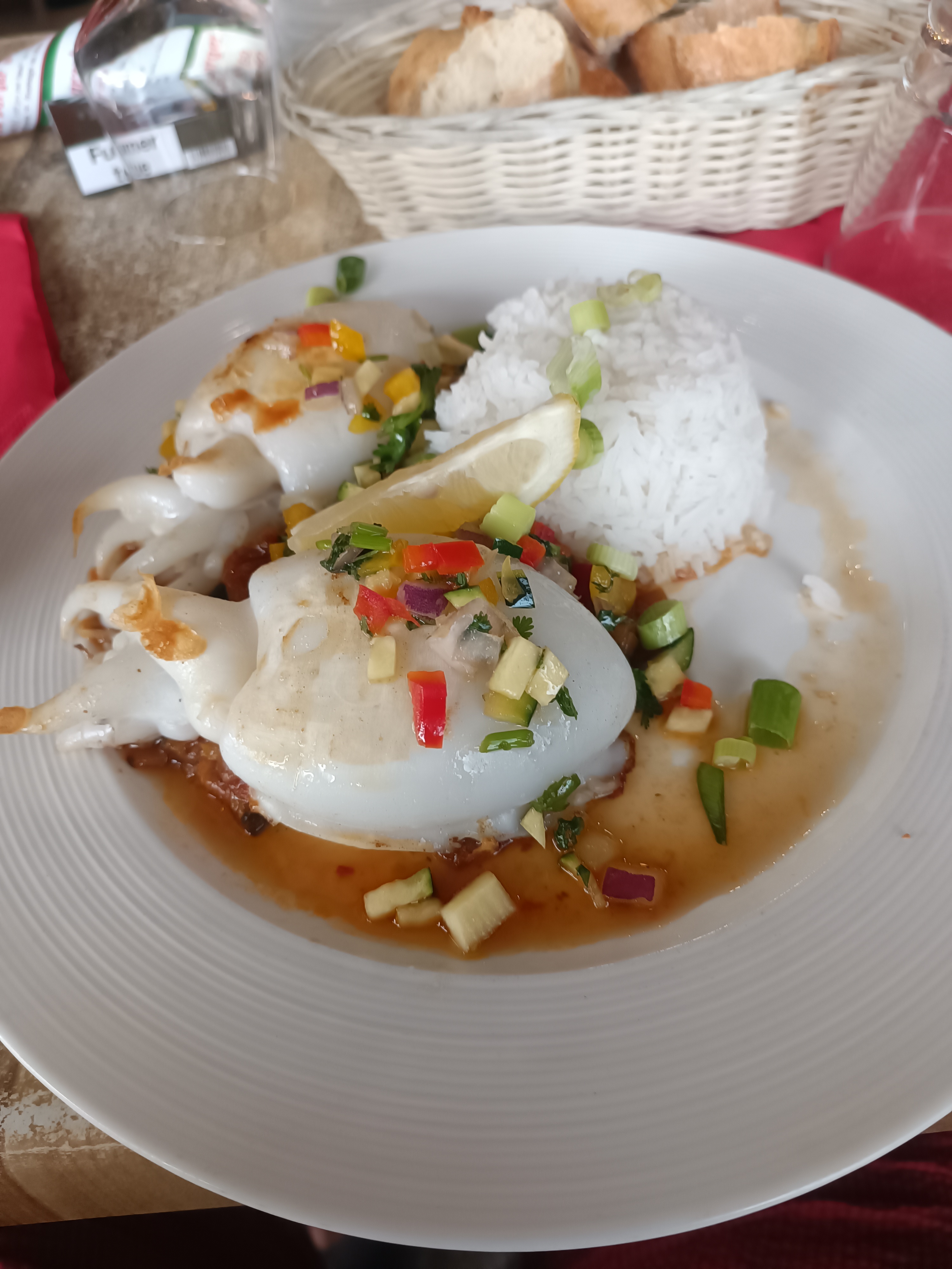 13h00 resto bondé mais on essai. Super accueil. Très bon emplacement au soleil. Le serveur n’a pas tardé à ns mener les cartes. Pas mal de choix et des tarifs très corrects. Ns avons pris 2 menus à 15€ (servit jusqu’à 13h30). Les téllines très bonnes, la petite salade rien d’exceptionnelle mais lorsque ns voyons notre plat… super👍Encornets à la plancha (2 par assiette), riz, petits légumes le tout vraiment très bon. Franchement pour 15euros c’est plus que honnête. Nous mettons également un 👌pour le serveur, non seulement il est sur tous les fronts mais en plus prend le temps d’avoir 1 petit mot sympa et il portait le masque😉. Entre l entrée et le plat un peu d’attente, le serveur ns a offert les cafés. Franchement nous reviendrons et encore merci