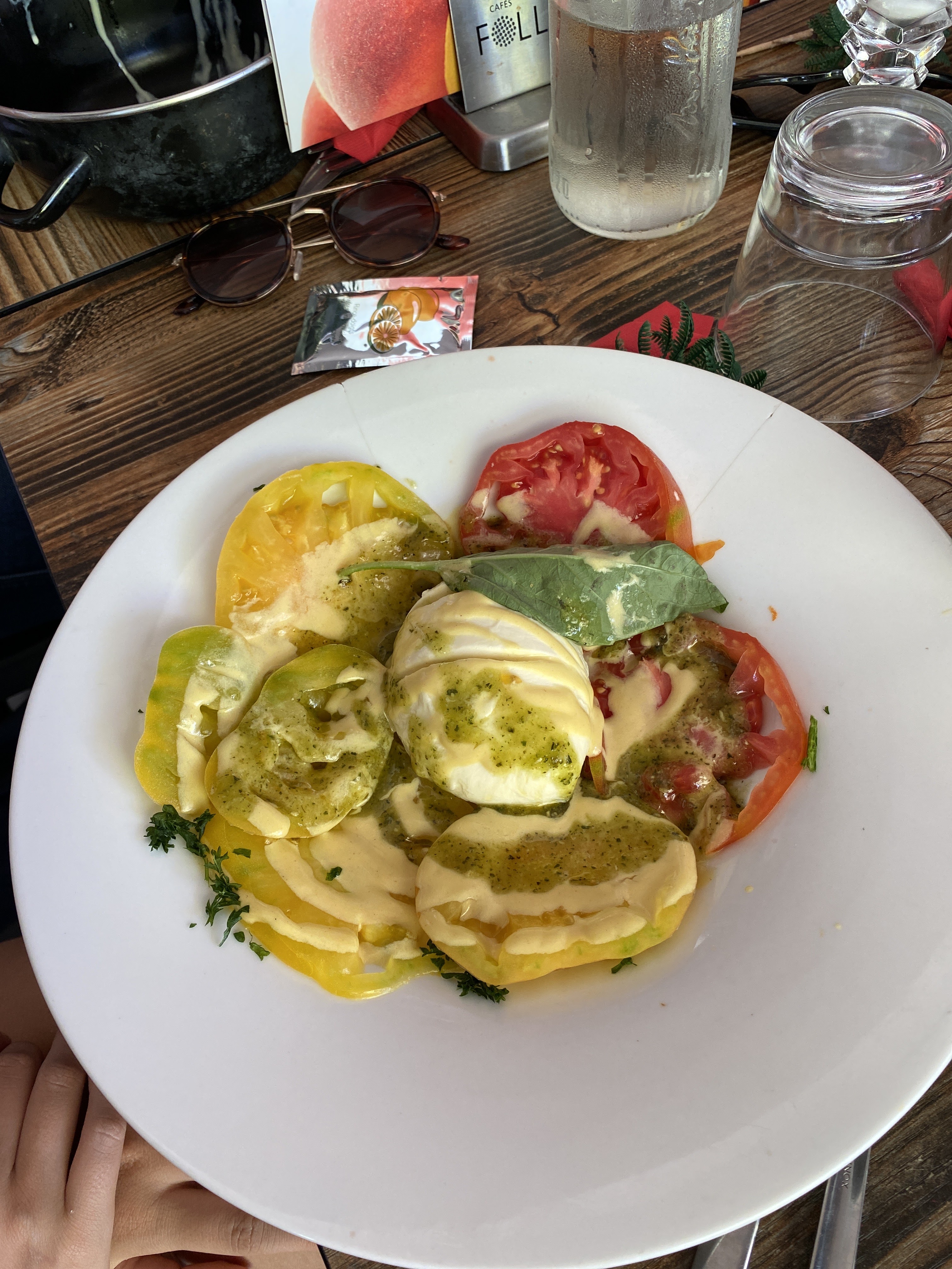 personnel agréable, les portions restent quand même petites et peu fournies (la salade ci dessous est censée être une salade repas, pour 5 tranches de tomates et une boule de mozzarella, 13.50€ est peut-être un peu trop cher.) Les moules sont délicieuses.