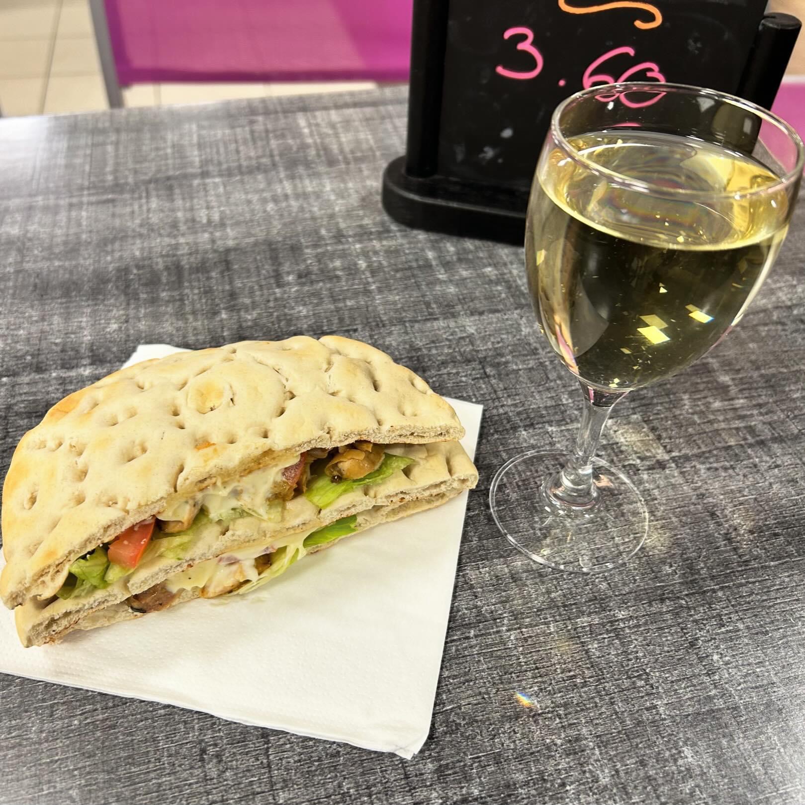Accueil sympathique, personnel agréable, en revanche la nourriture n’a vraiment rien d’exceptionnel, j’aurais voulu goûter une pizza mais à 18h il n’y a pratiquement plus rien de disponible, j’ai dû me rabattre sur un sandwich et une gaufre. Le tout ne fait pas vraiment « frais » (sandwich emballé donc fait depuis combien de temps je l’ignore et la gaufre un peu mollassonne certainement réchauffée, donc rien de fou fou…). En somme, ça peut dépanner car ce n’est pas mauvais non plus, mais pas plus. En revanche niveau prix je ne trouve pas ça très cher. Le sandwich au pain suédois (assez gros), verre de vin blanc et gaufre au sucre pour 9€ en tout, j’ai vu bien pire, mais ça va peut-être avec la qualité toute relative… 🤷🏻♀️ Les autres produits disponibles aux heures de repas (notamment déjeuner) sont peut-être meilleurs ? 🤔