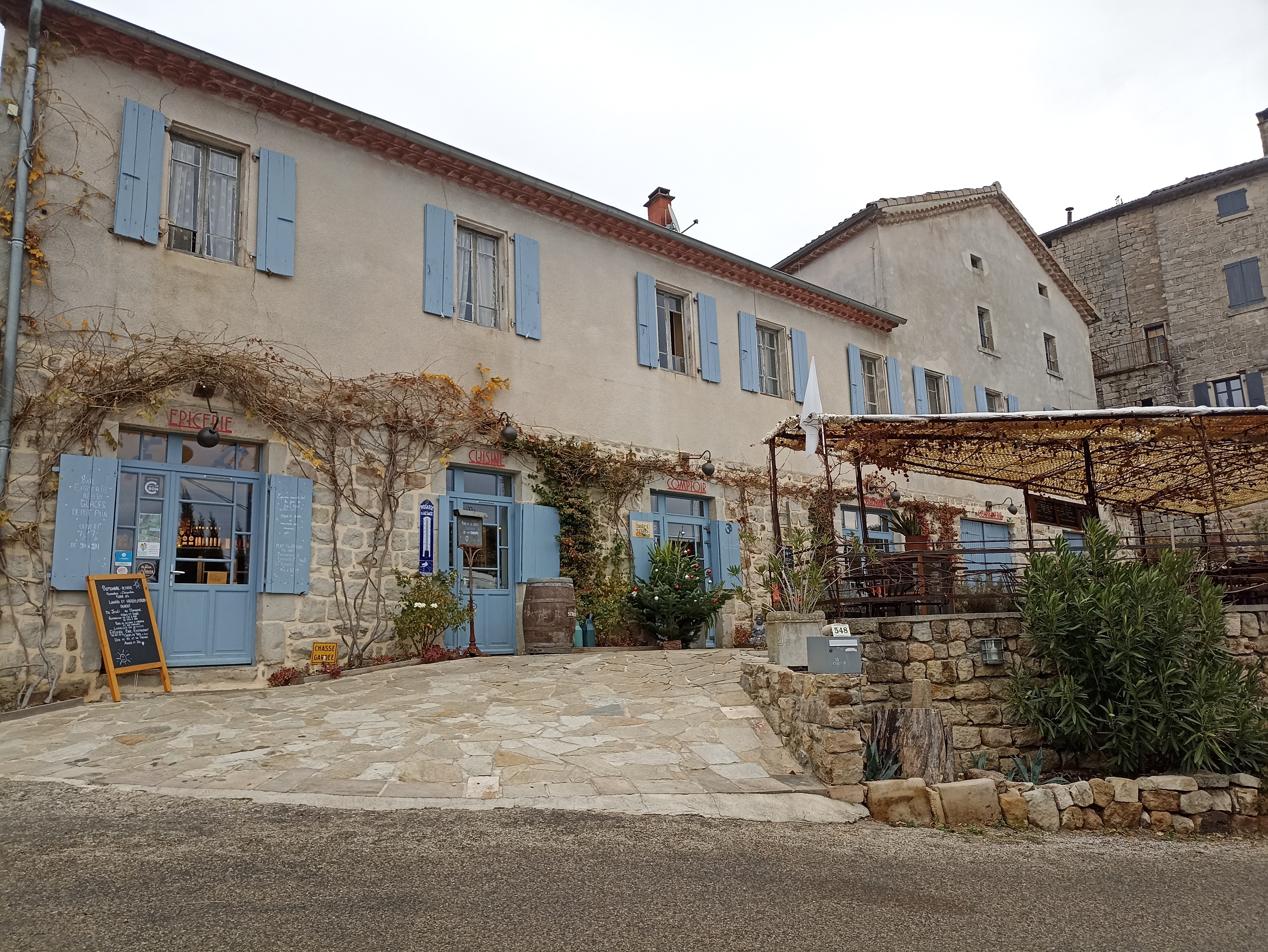 Petite épicerie et restaurant qui étaient fermés depuis des années. Cela fait revivre le village. Très bon accueil, bon et terrasse ombragée très agréable