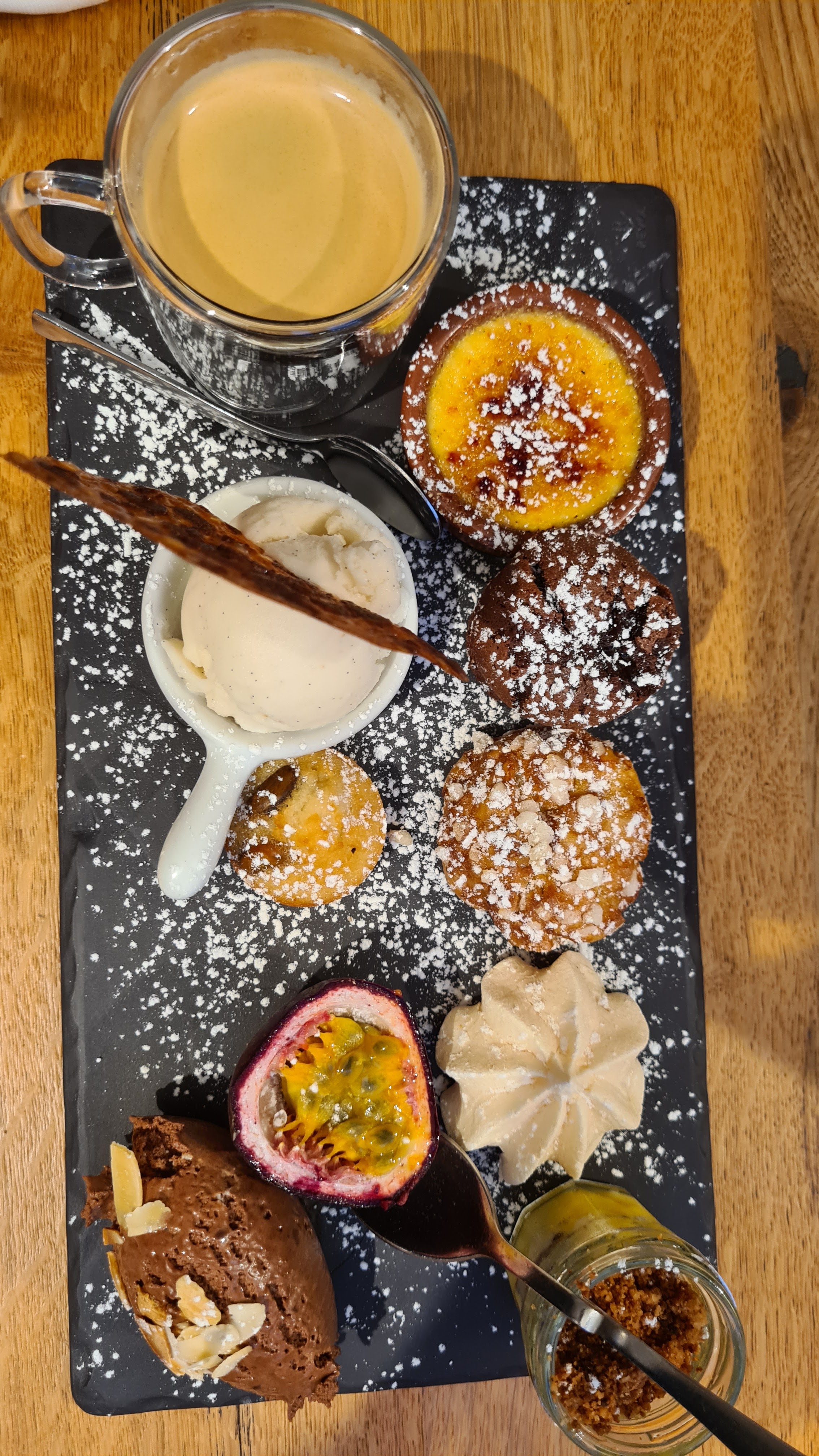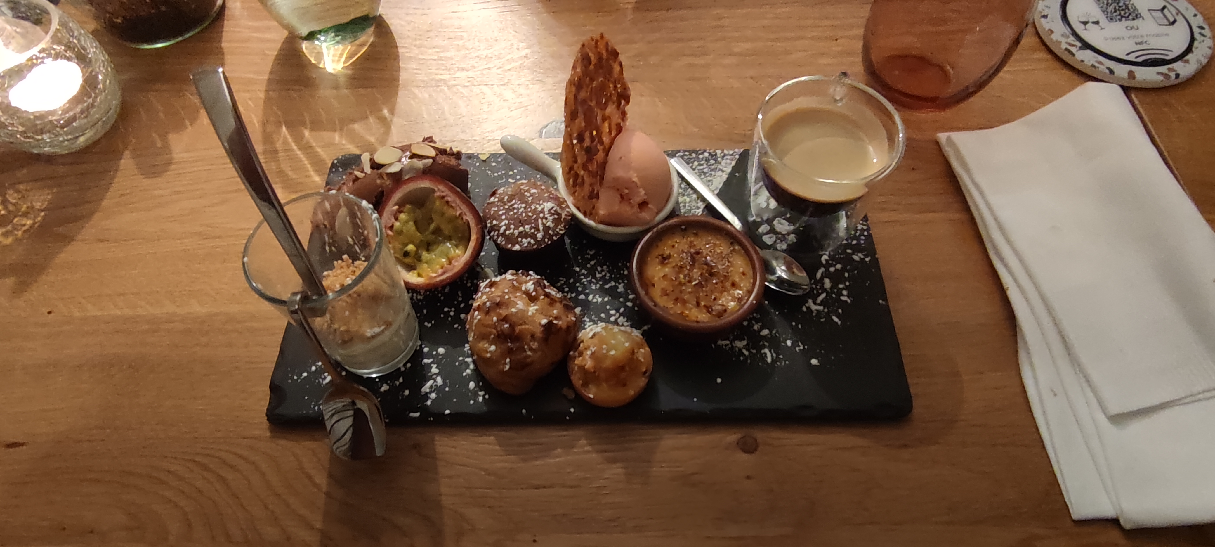 Assiettes raffinées, saveurs travaillées, service très professionnel, un délice, et le café trop gourmand inévitable !