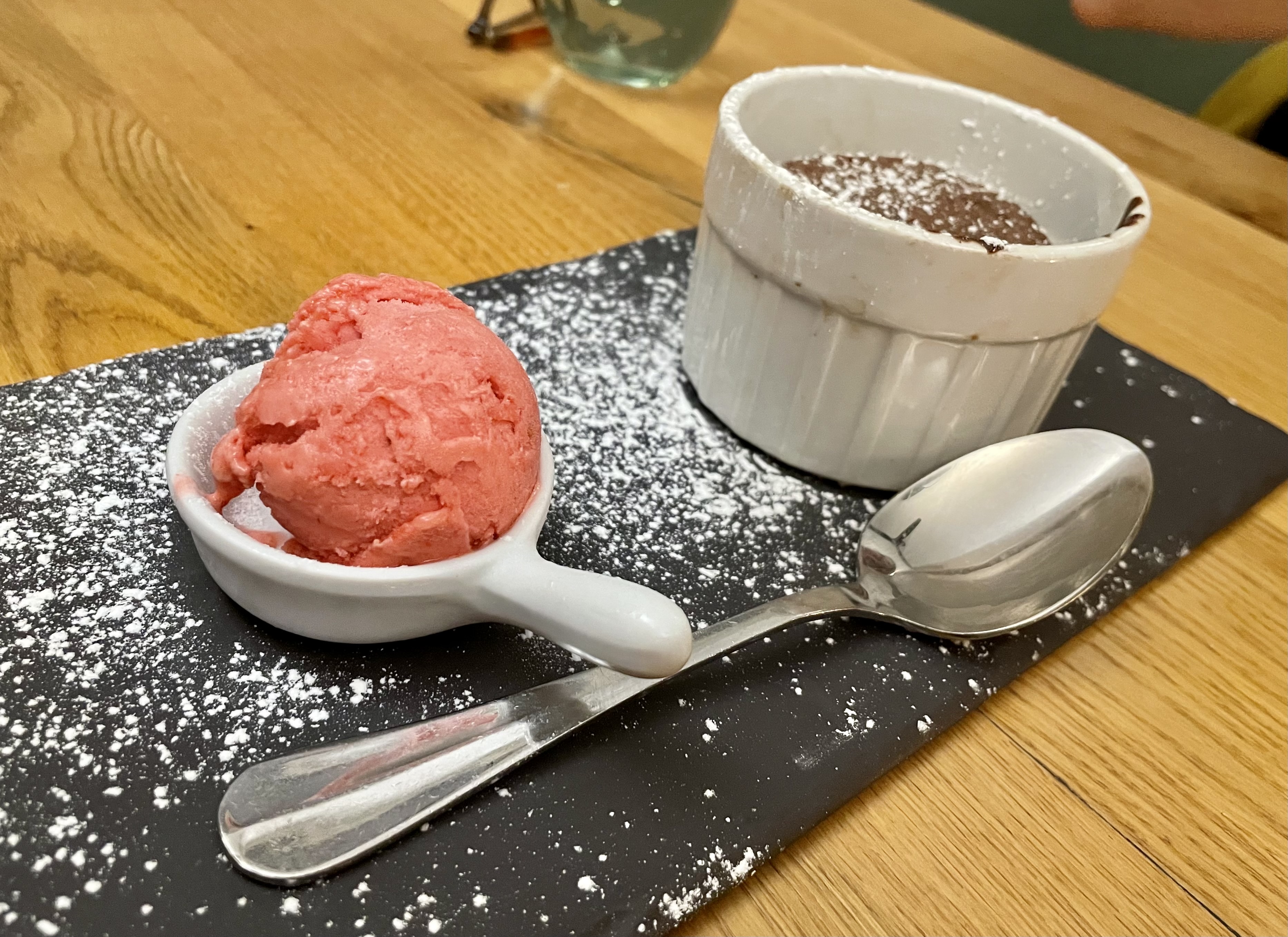 Les plats étaient excellents, ainsi que les vins avec un beau choix. Les entrées par contre sont trop chères et très chiches, dommage. Mais le dessert a déçu davantage, fondant au chocolat sec et malheureusement trop cuit. On reviendra pour un autre plat, mais sans entrée ni dessert, et on reprofitera de cette magnifique cave à vin.