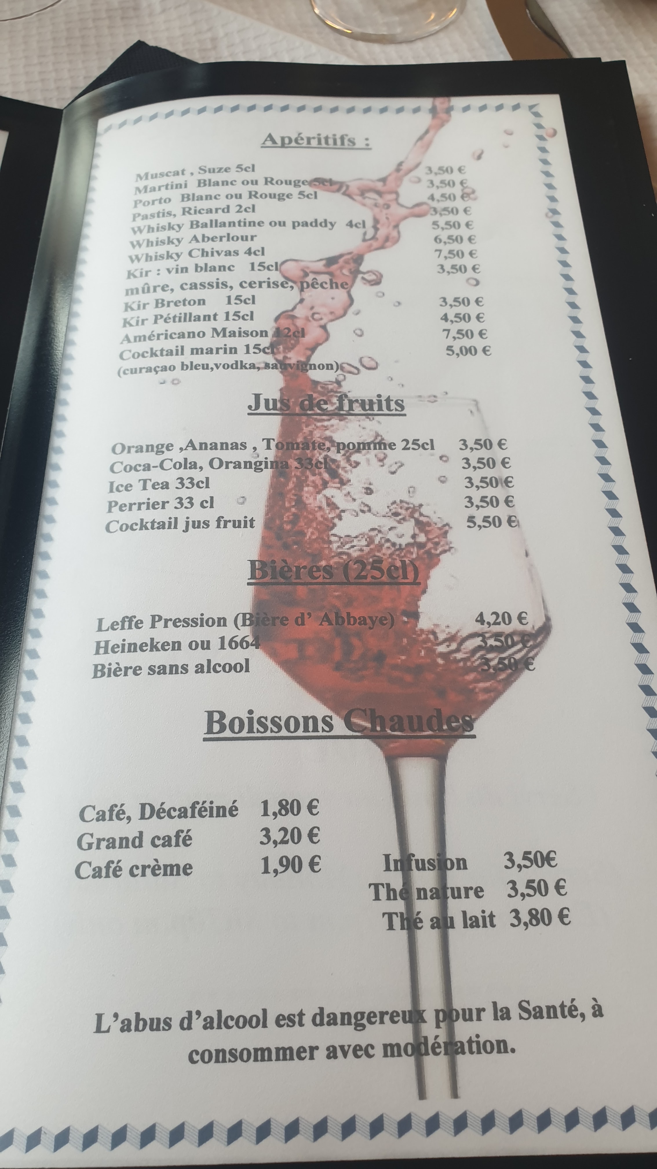 Très bon petit restaurant menu du soir à prix très très correct cuisine excellente je le conseillerais à mes collègues sans probleme