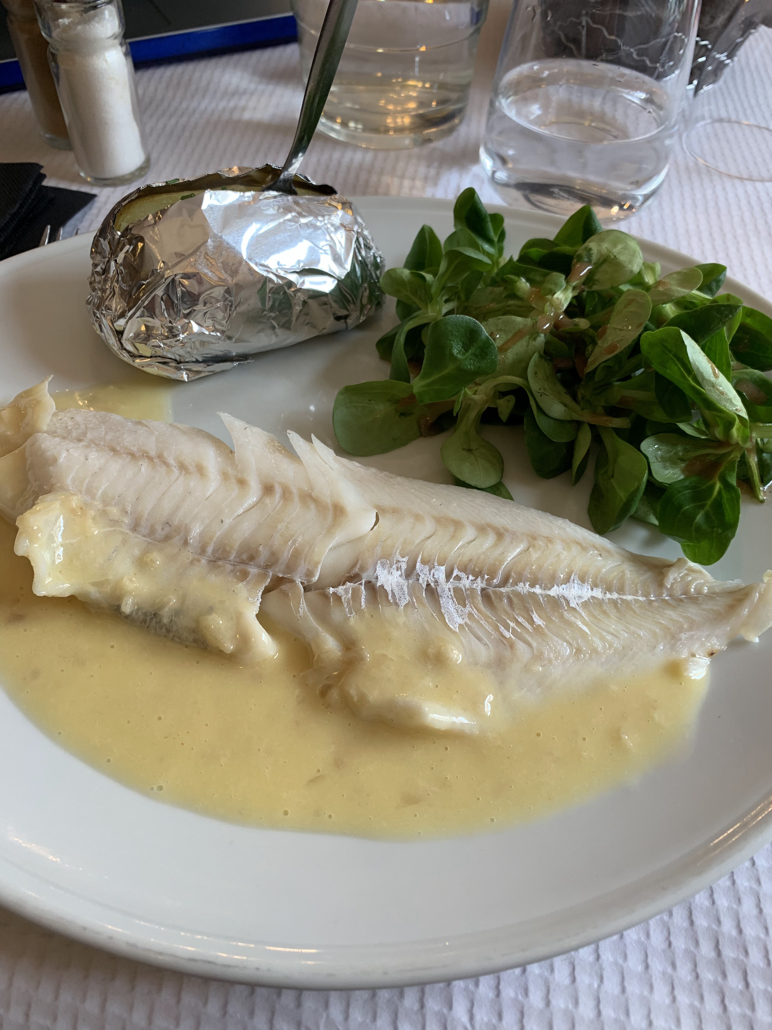 Restaurant complet ce soir. Un délicieux filet de lieu au beurre blanc