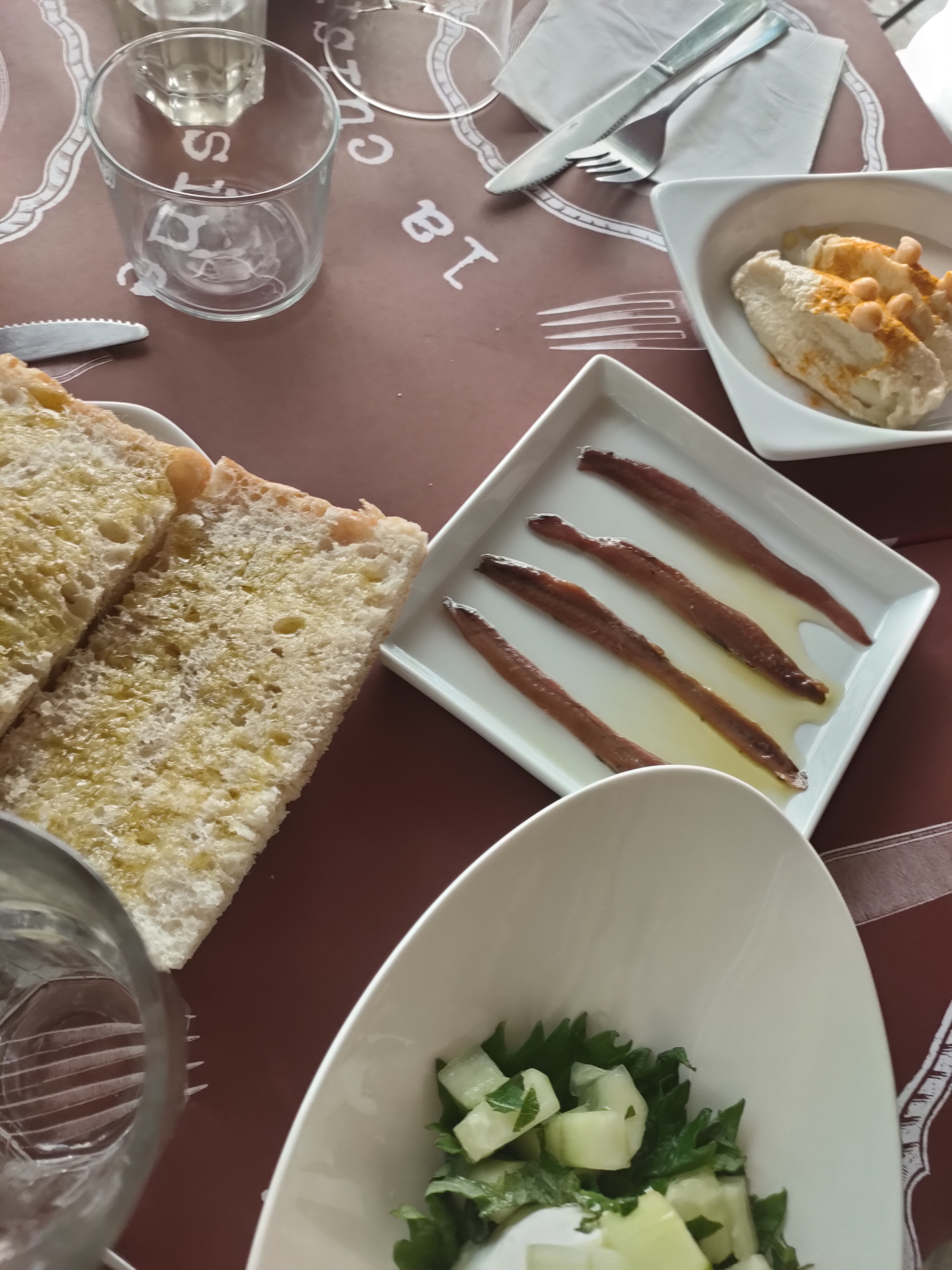 (ce commentaire concerne les tapas, étant donné que nous n'avons pas goûté leurs plats). Nous ne pouvons pas dire que ce n'est pas bon, mais le rapport qualité prix n'est pas au rendez vous. Je comprends le fait que cela soit des produits locaux etc, mais 12€ le petit chèvre frais sans goût sur une feuille de vigne avec 10 petits cubes de concombres, c'est quand même se moquer du monde. Pareil pour les 4 filets d'anchois qualité premium baignant dans de l'huile pour 9€, c'est beaucoup trop cher pour ce que c'est. Mis à part ça, je trouve que l'huile du pain a l'ail était bonne (seul point positif). J'ai surtout l'impression que le restaurant justifie ses prix car la majorité des produits sont locaux, alors qu'il y a presque aucun travail de leur part et que les quantités sont tout simplement ridicules.