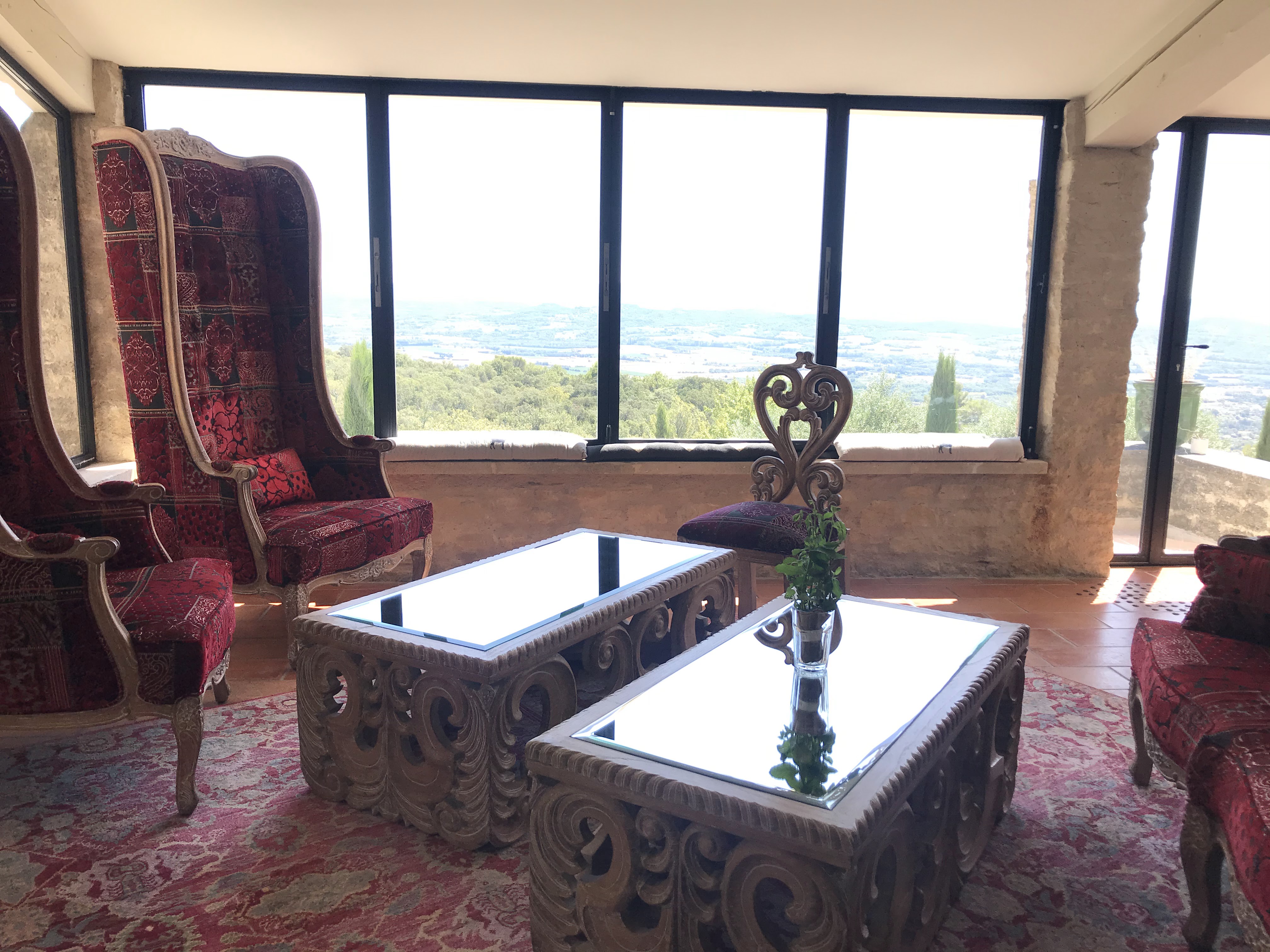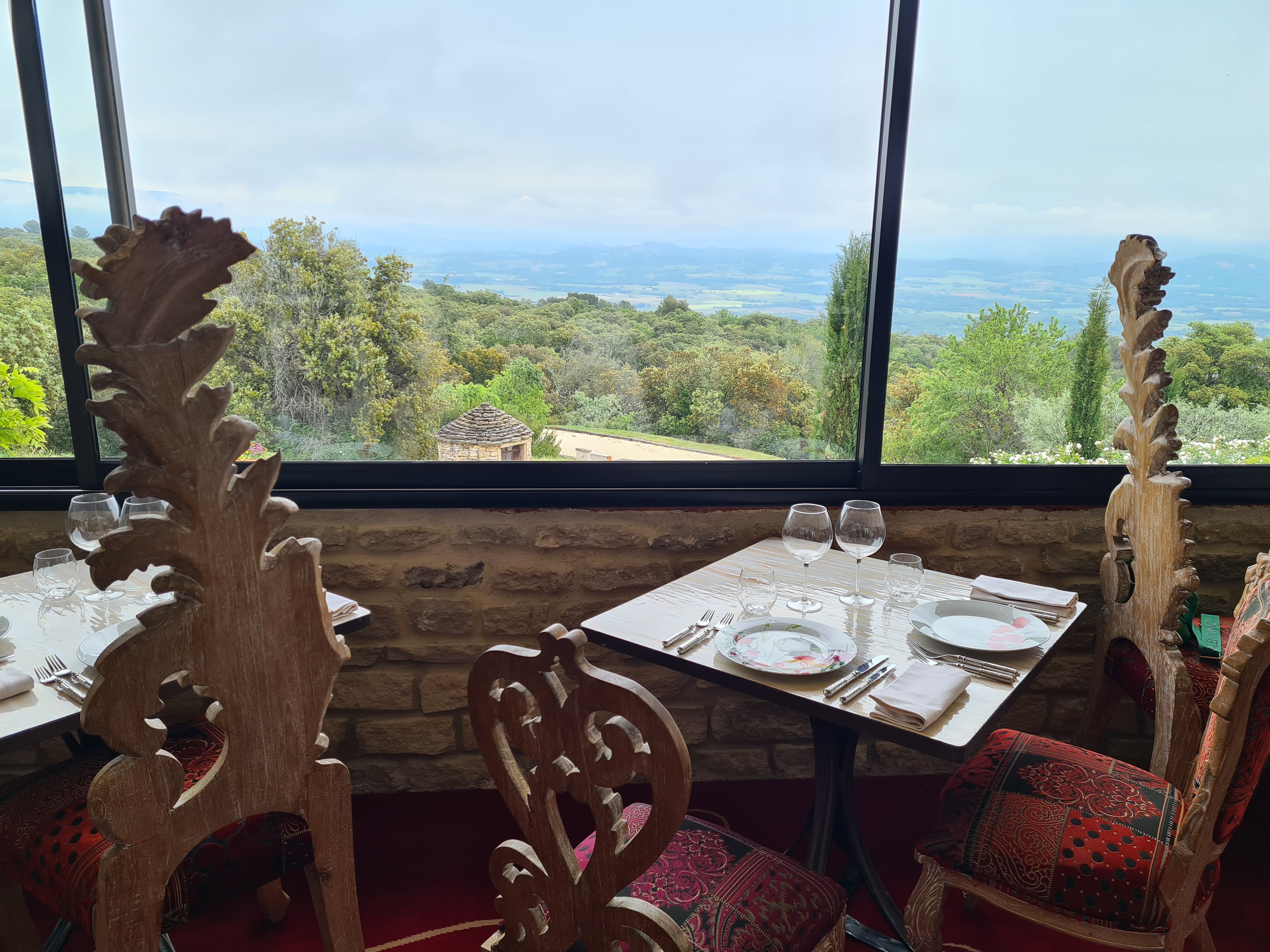 Salle de restaurant atypique, vue magnifique sur le Luberon. Rapport qualité prix au top pour le menu à 38€.