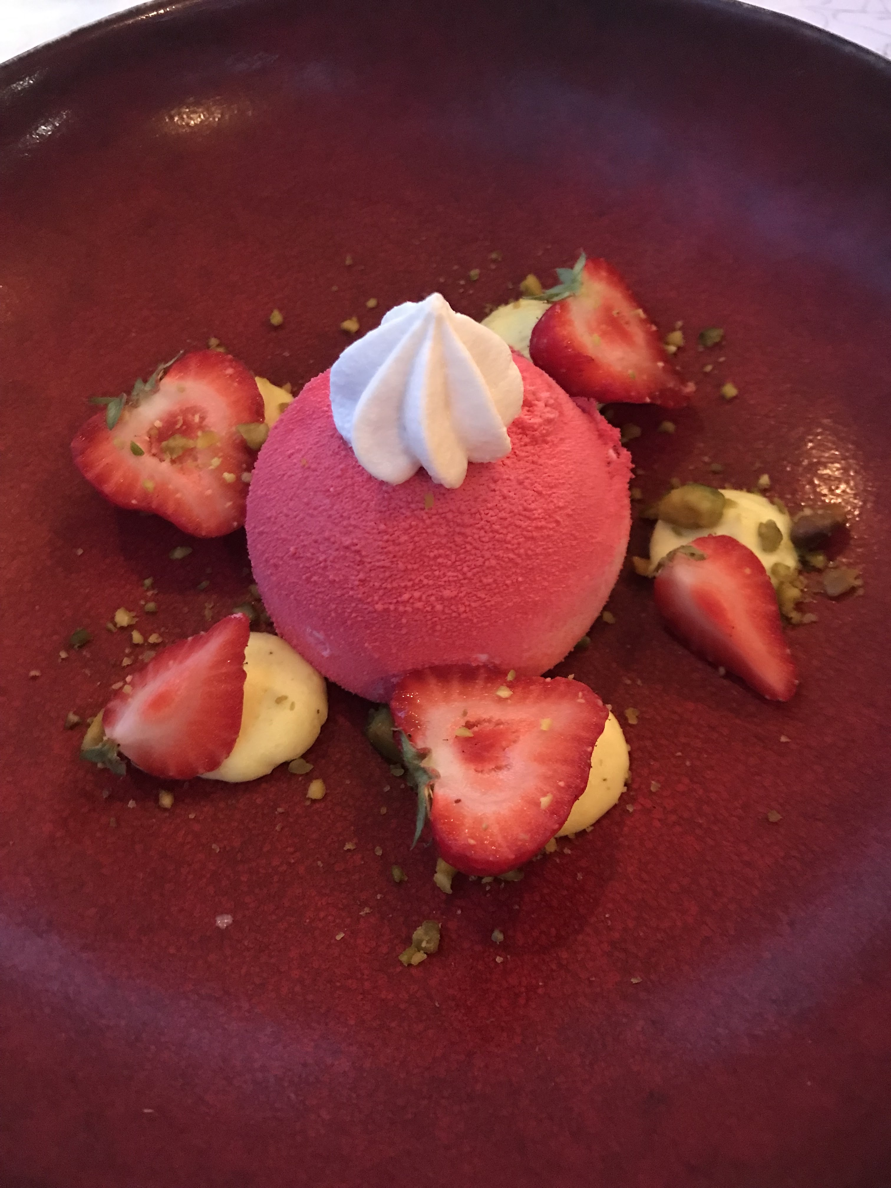 Le restaurant paraissait bien, j’ai pris le melon en entrée cela aller ensuite j’ai eu le droit à un filet de bœuf à une cuisson pas comme j’ai demandé. Et mon frère a eu le droit à un bout de plastique dans son assiette. Un pré dessert avec des verrines aux chocolats blancs comme de la mousse c’était sans intérêt et pas bon. Les desserts dans l’ensemble très moyen surtout la soupe de melon qui n’était pas mur.