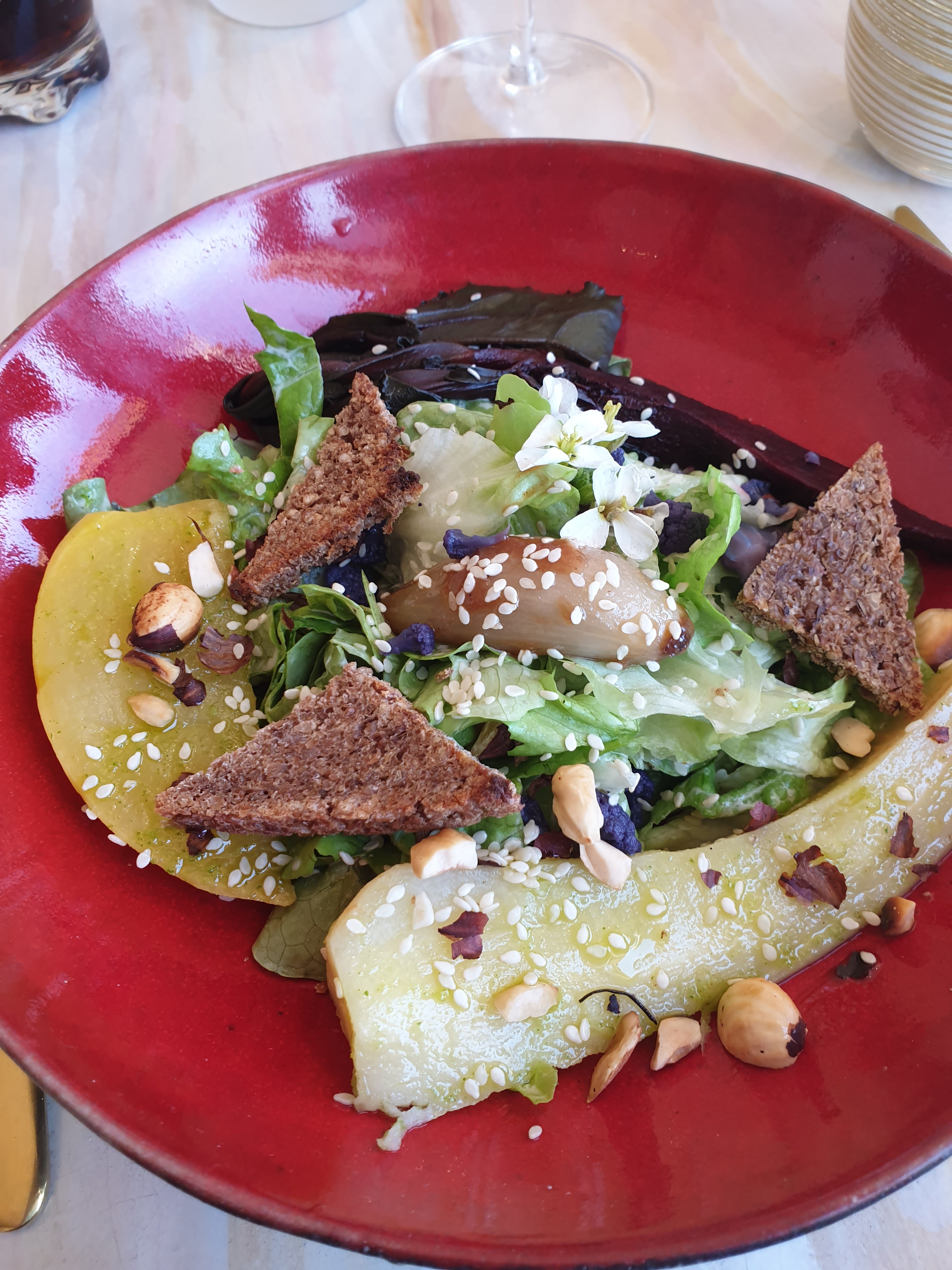 Juste parfait ! Je recommande pour sa cuisine, son cadre, son accueil... Les plats sont joliment dressés et très bons !