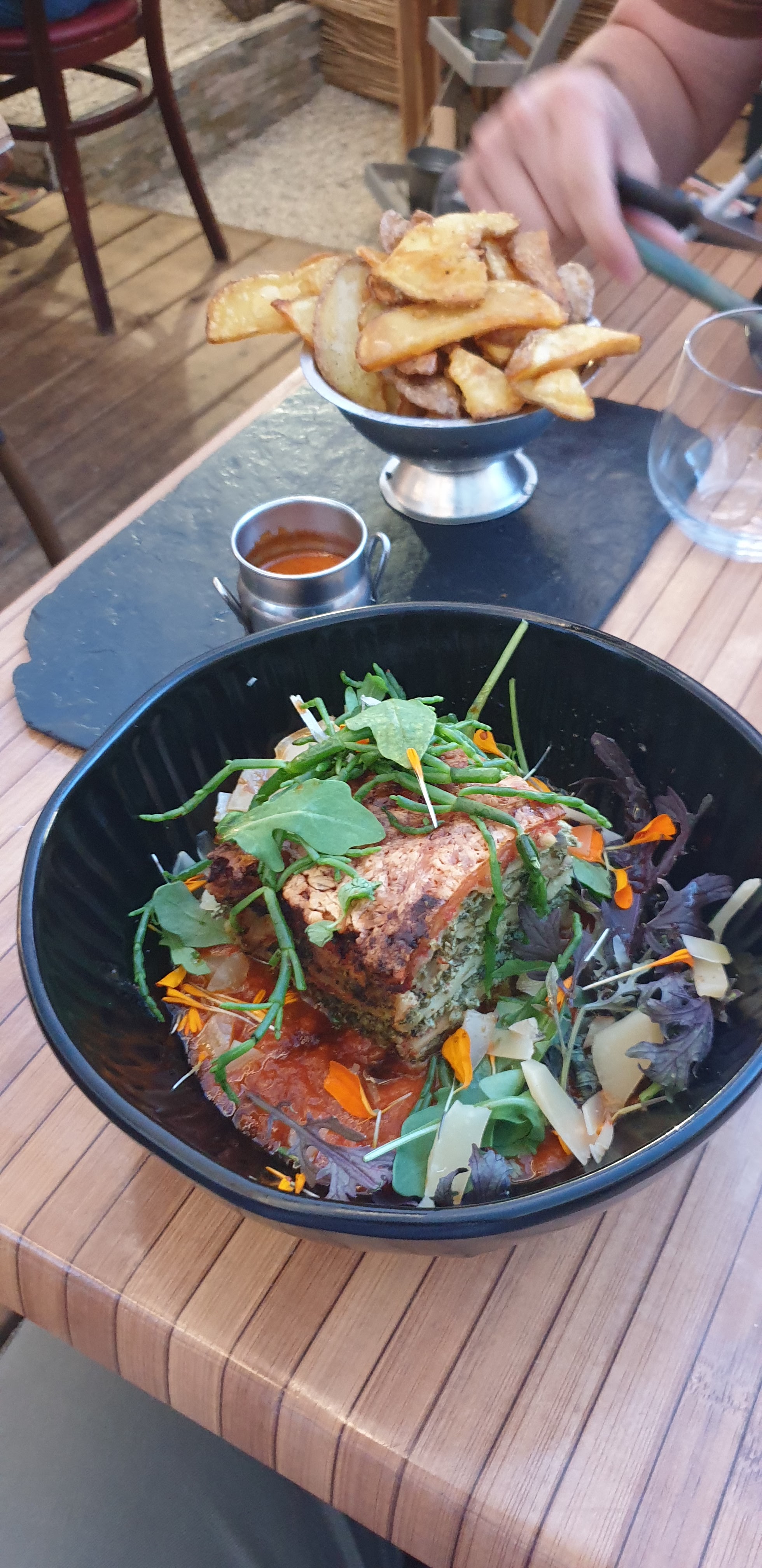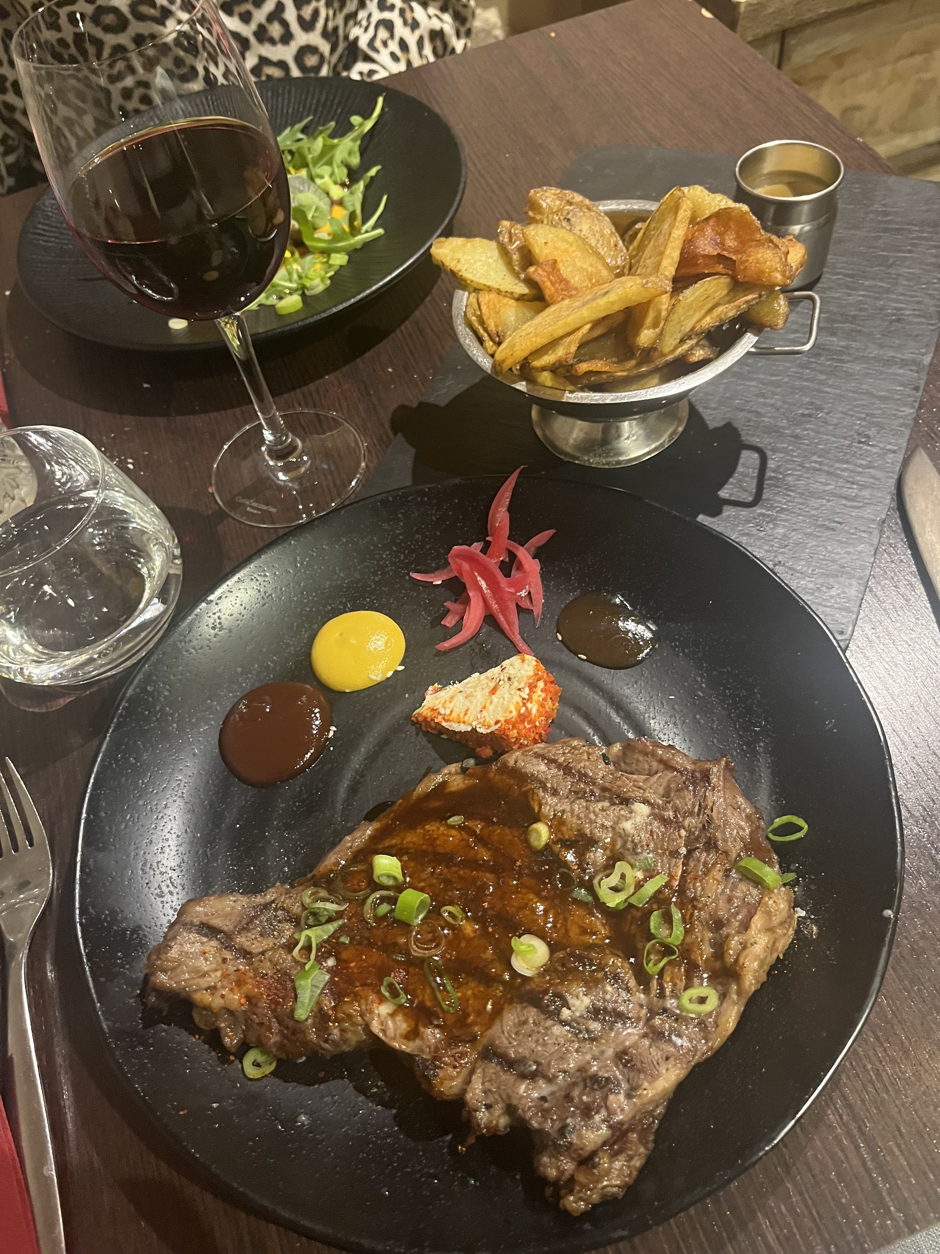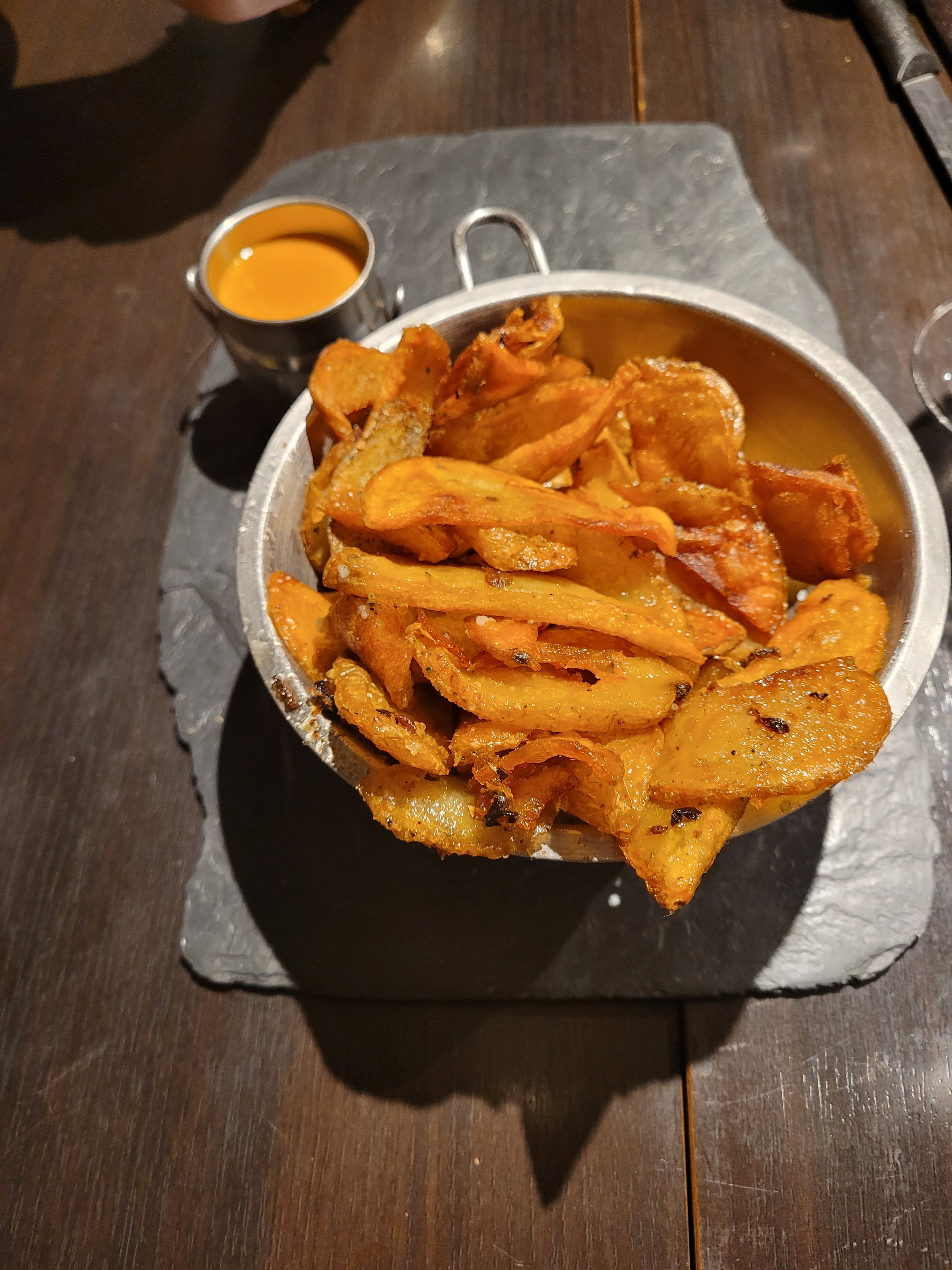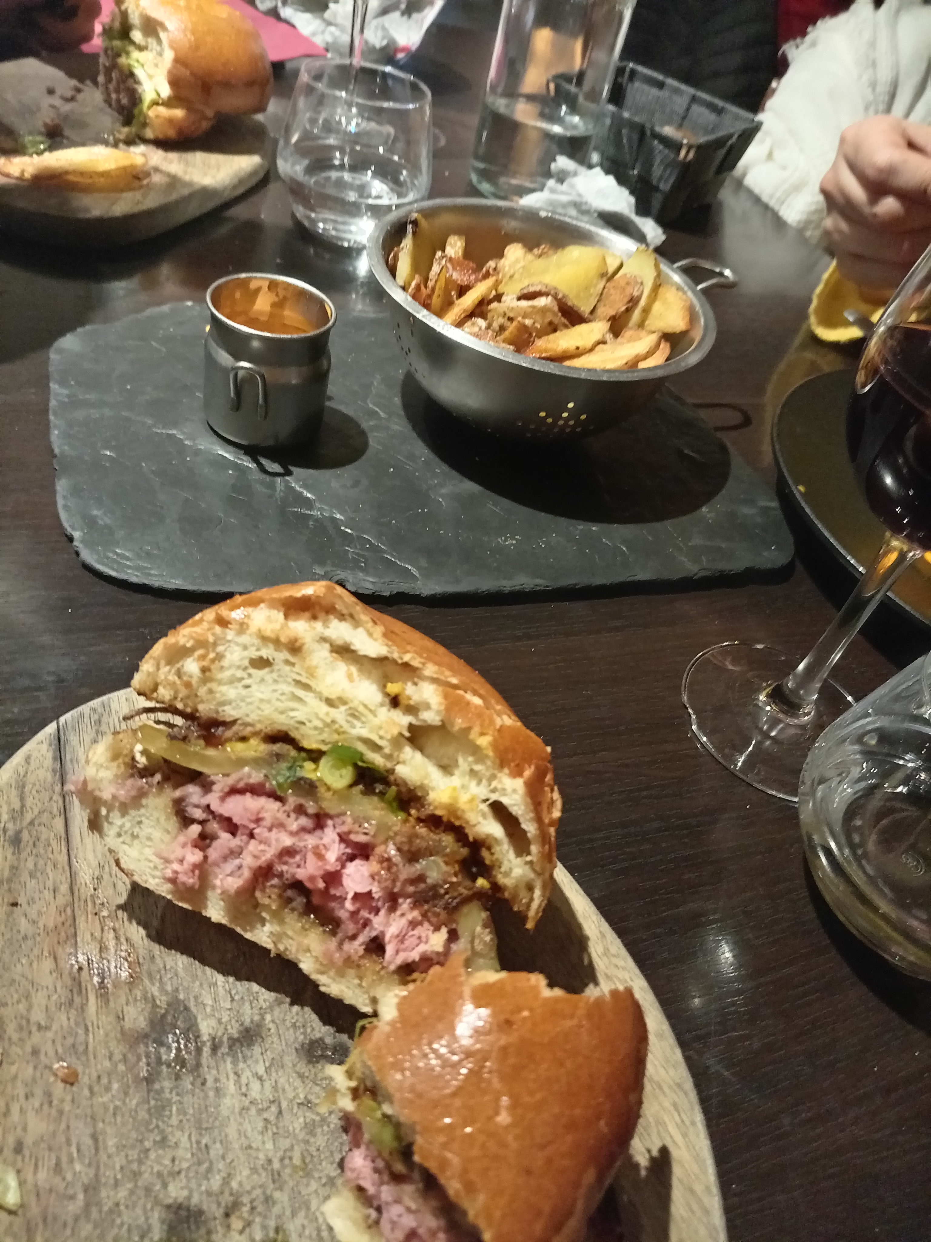 Bon repas dans l'ensemble avec quelques bémols. C'est fait maison, bien présenté et très bon. Les quantités sont un peu limite pour les gourmands. Puis manger un steak tartare sur une ardoise de 15cm de large c'est vraiment pas facile. Le partage des frites dans un même bol pour 2, je comprends pas trop...et c'est aussi très bruyant.