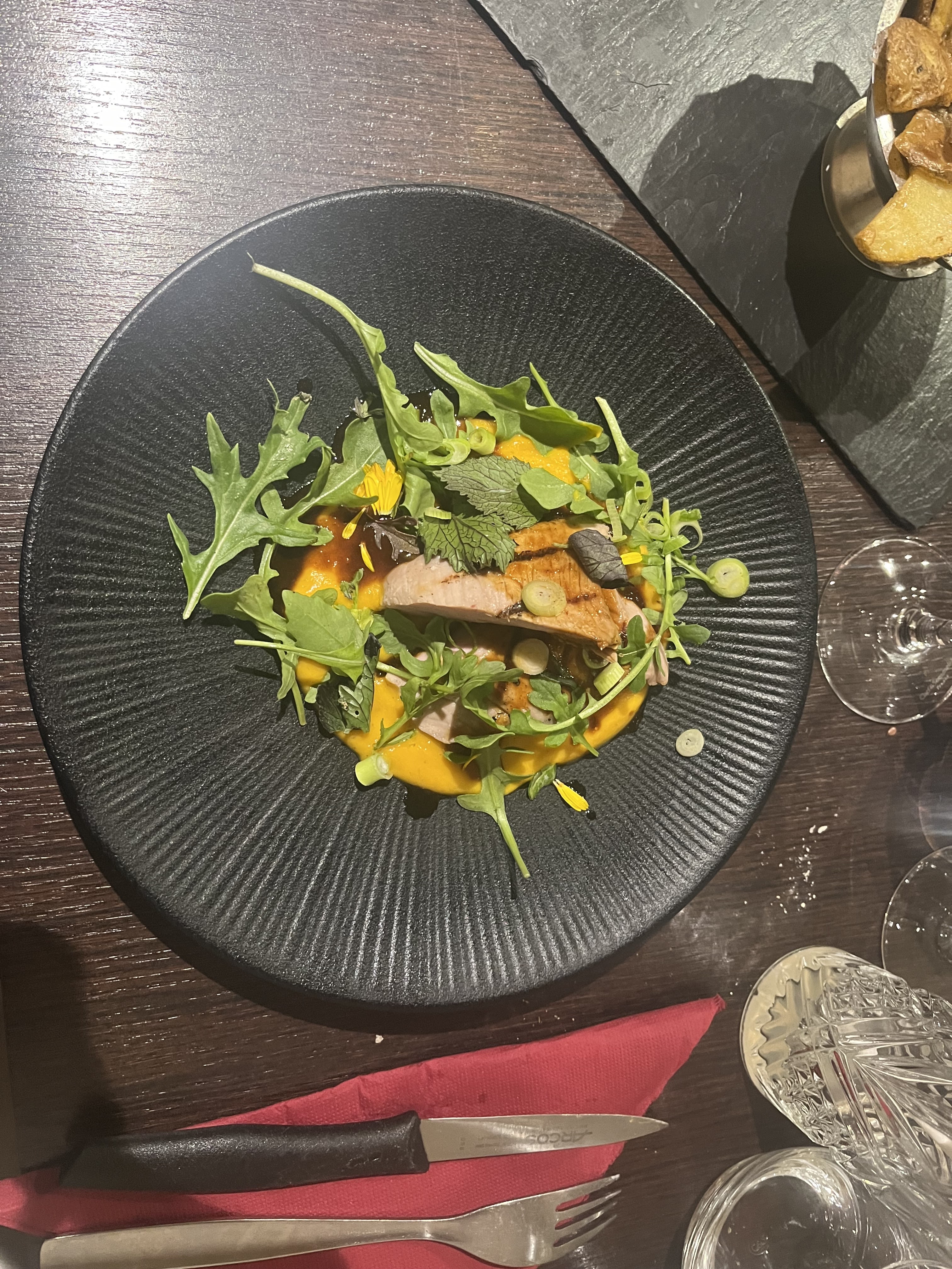 Un cadre simple mais une cuisine maison avec de superbes produits. Un petit bémol il faisait un peu froid dans la salle et on aurait bien mangé un peu plus de frites 😉