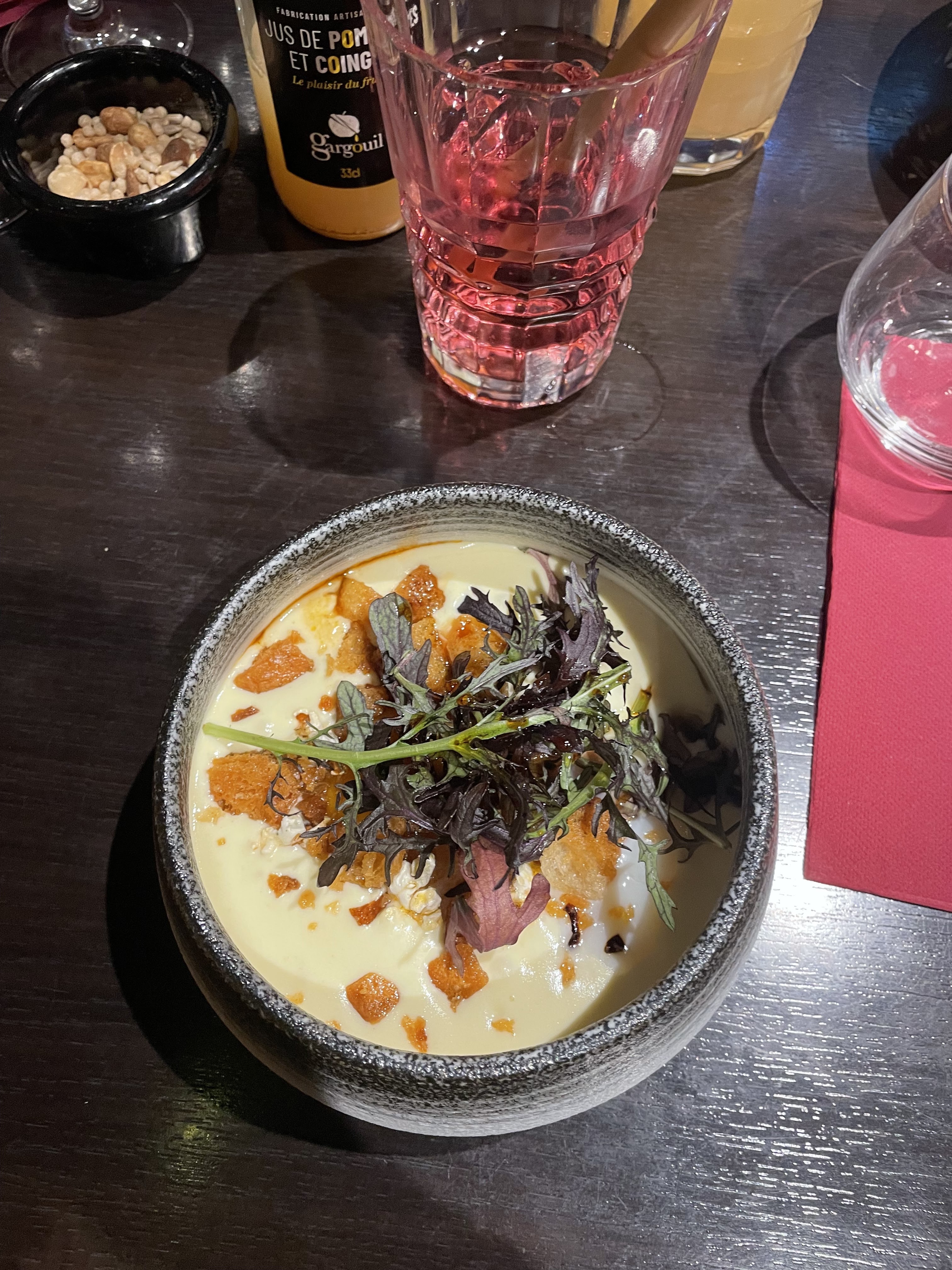 Vraiment excellent, menu intéressant avec des ingrédients locaux servis par une équipe sympa. Petit mot pour le playlist du soit du 16/03 qui était vraiment génial 😅. A la prochaine.