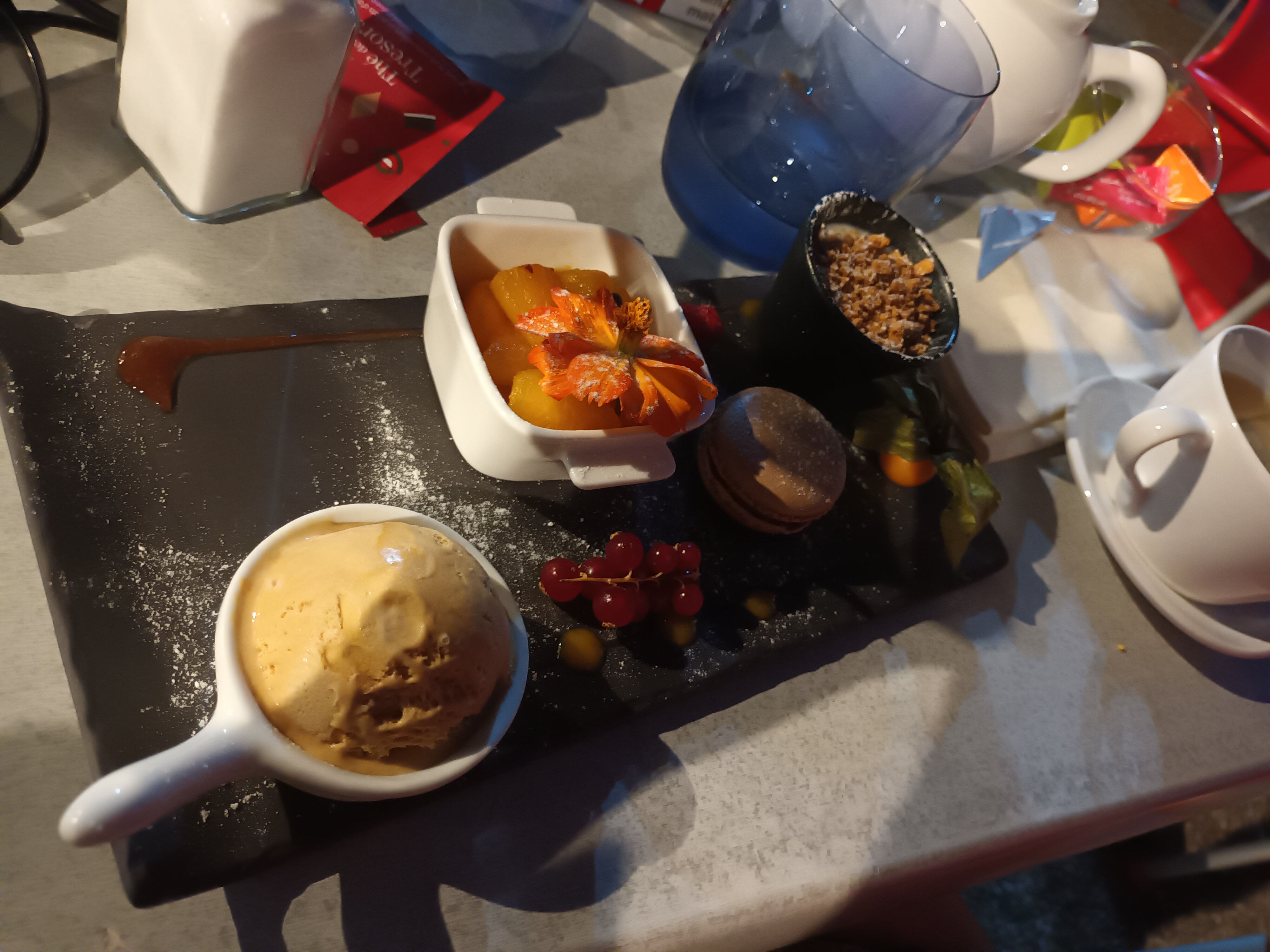 Lieu très charmant Bonne cuisine avec mention ++ pour les glaces !! 🍨🍧 Mais aussi les macarons 😁😁 Personnel sympa (courage au p'ti jeune💪💪en formation je pense) Parking Petite cour Je reviendrai 😉
