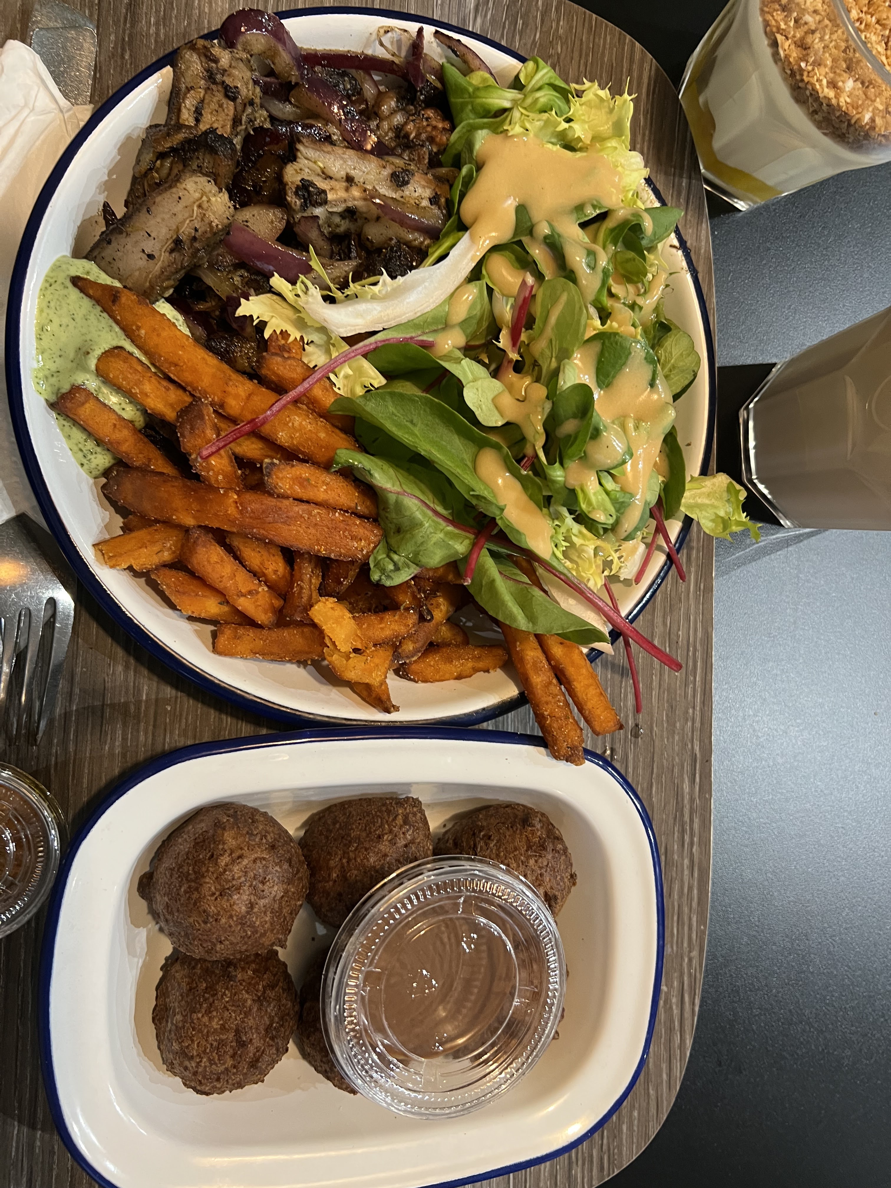 Plats commandés en livraison. Tout était excellent ! La cuisson de l’agneau et du poulet était parfaite. Les sauces vertes et pimentés sont à tomber aussi ! Nouvelle pépite que j’ajoute à ma liste