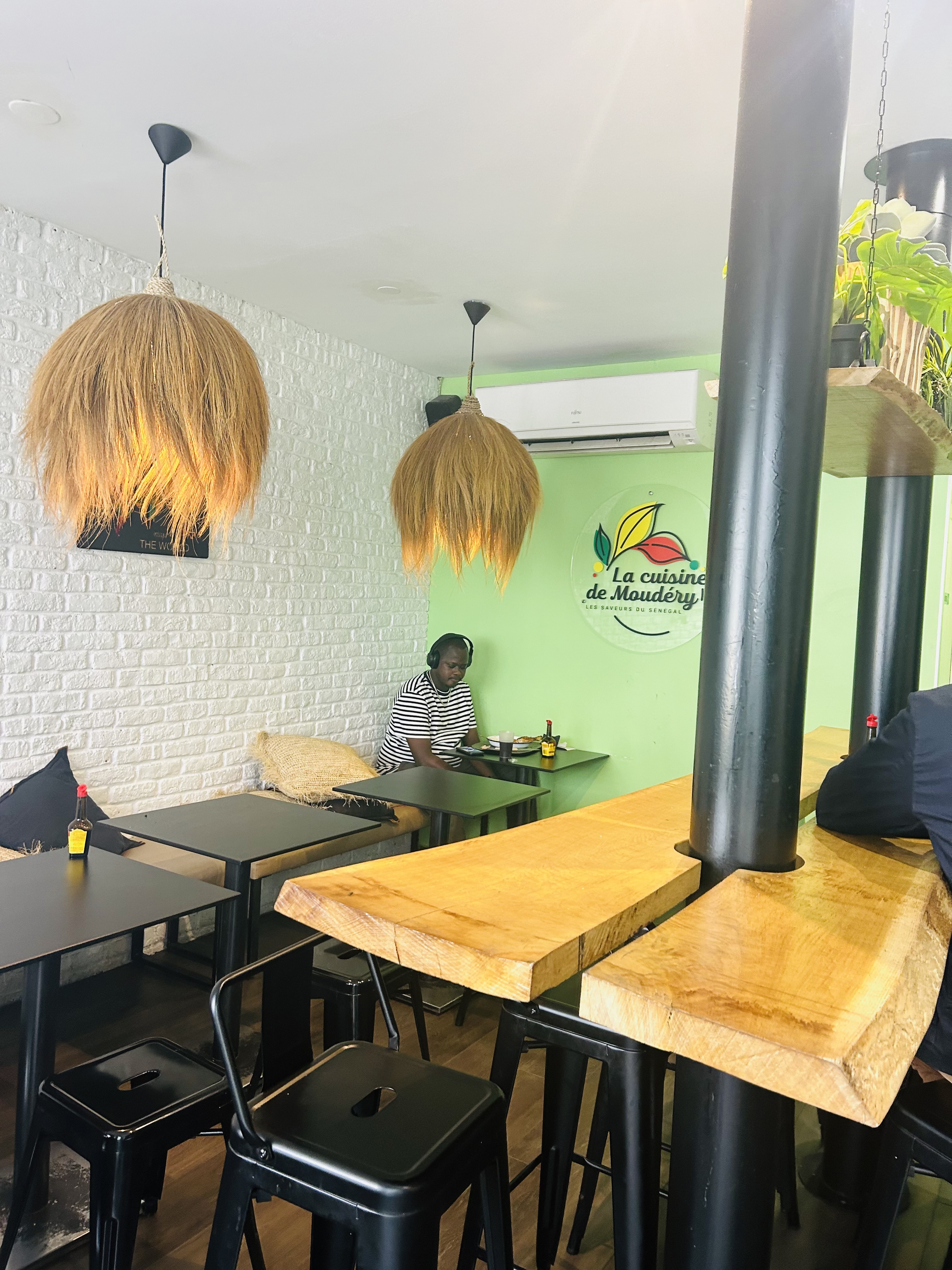 Ce fut une très belle expérience, la cuisine de moudery m'a fait voyager au Sénégal, la musique d'ambiance était génial sur un fond de rnb old school des années 90 et 2000. J'ai pris la formule M qui comprenait un plat + boussn+ dessert, le tout pour 13.90 euros. Personnellement j'étais rassasié. Je n'y manquerai pas de revenir dès que je reviendrai sur Lyon. C'était au top. Et la carte est variée