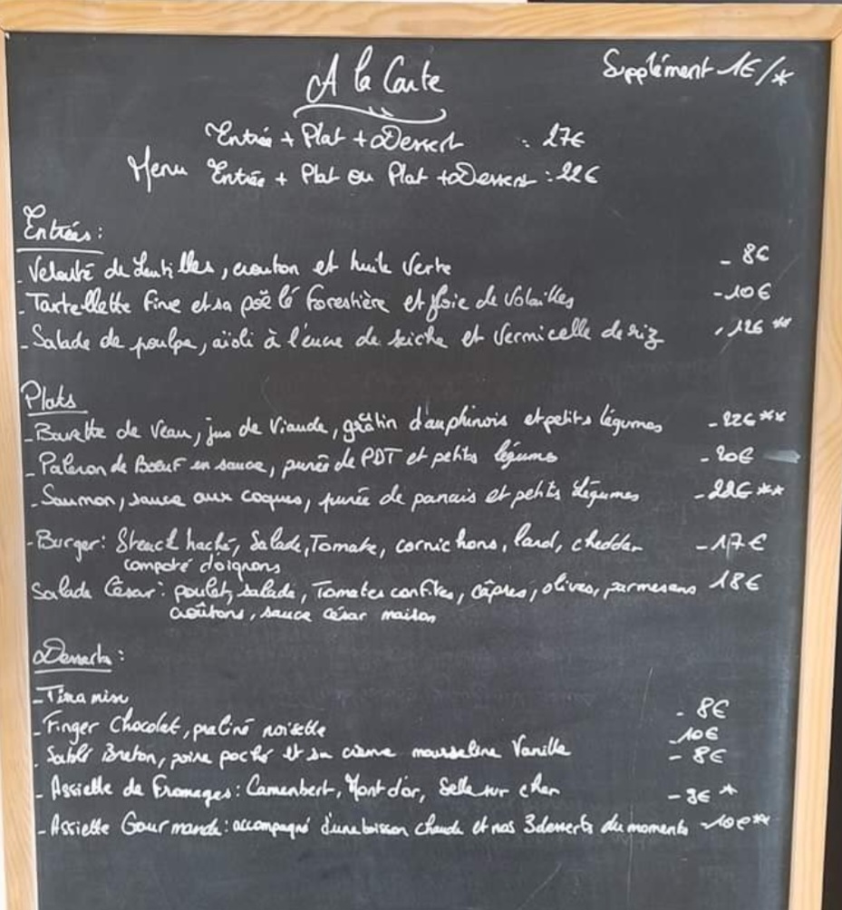 Excellente cuisine dans une ambiance très agréable que l'on retrouve habituellement dans une petite ville comme celle-ci. J'aime l'idée du menu dynamique présenté sur la table sur un tableau blanc.
