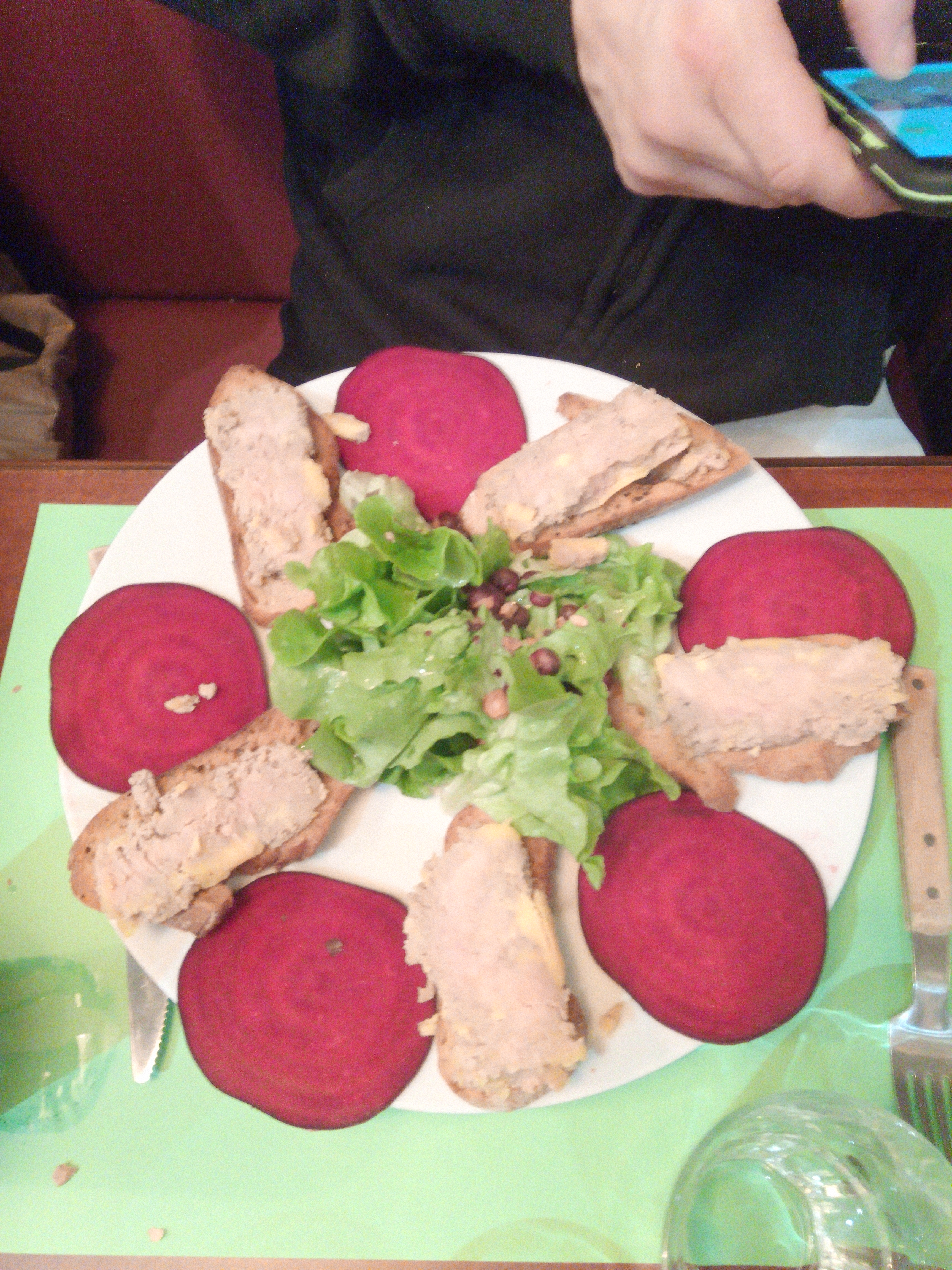 Déco vraiment sympa, originale et humoristique ;-) Quand aux assiettes elles étaient plus garnies les unes que les autres ! Je n'ai pas pu prendre de dessert ! Je devrais revenir ;-)