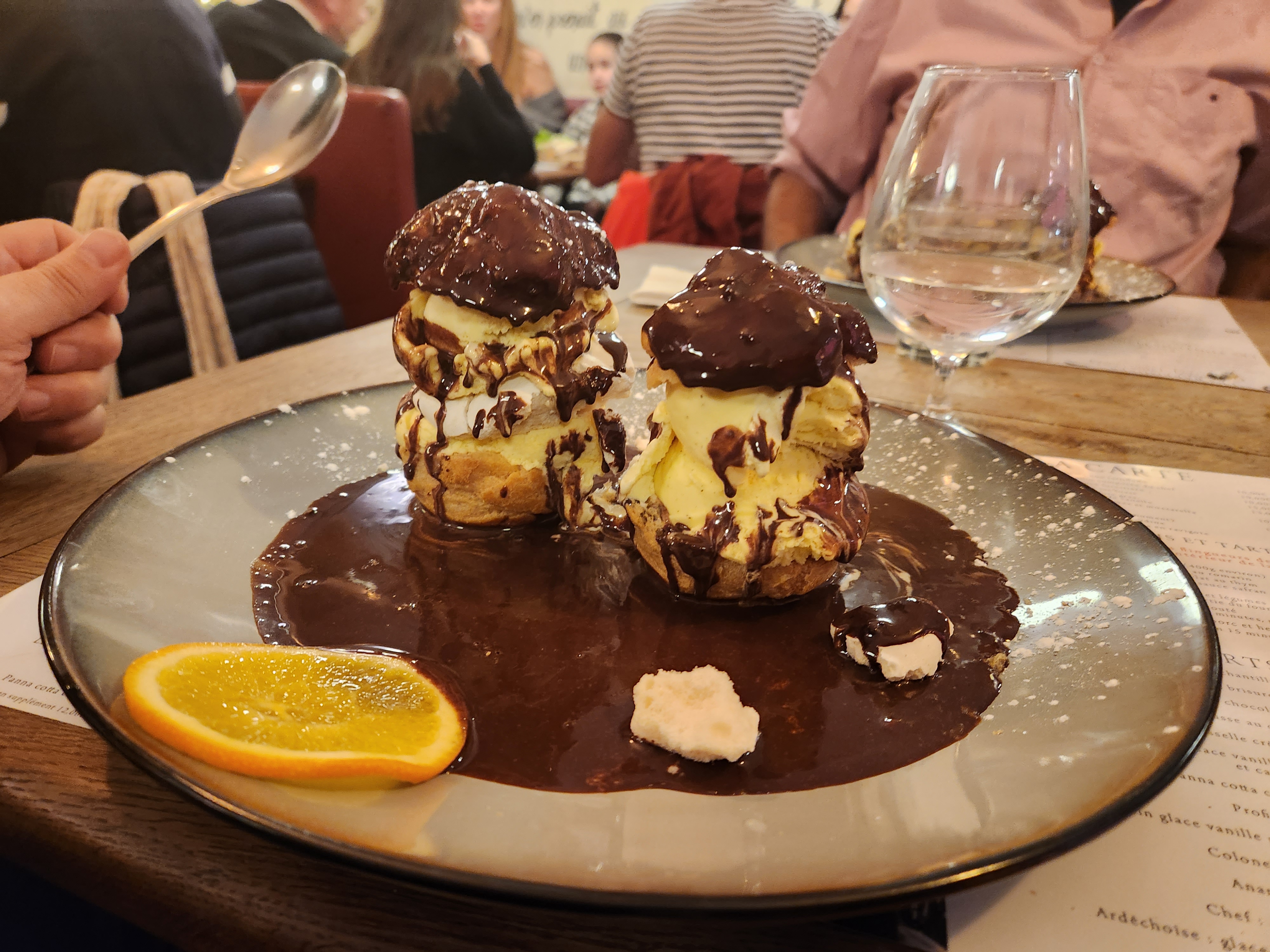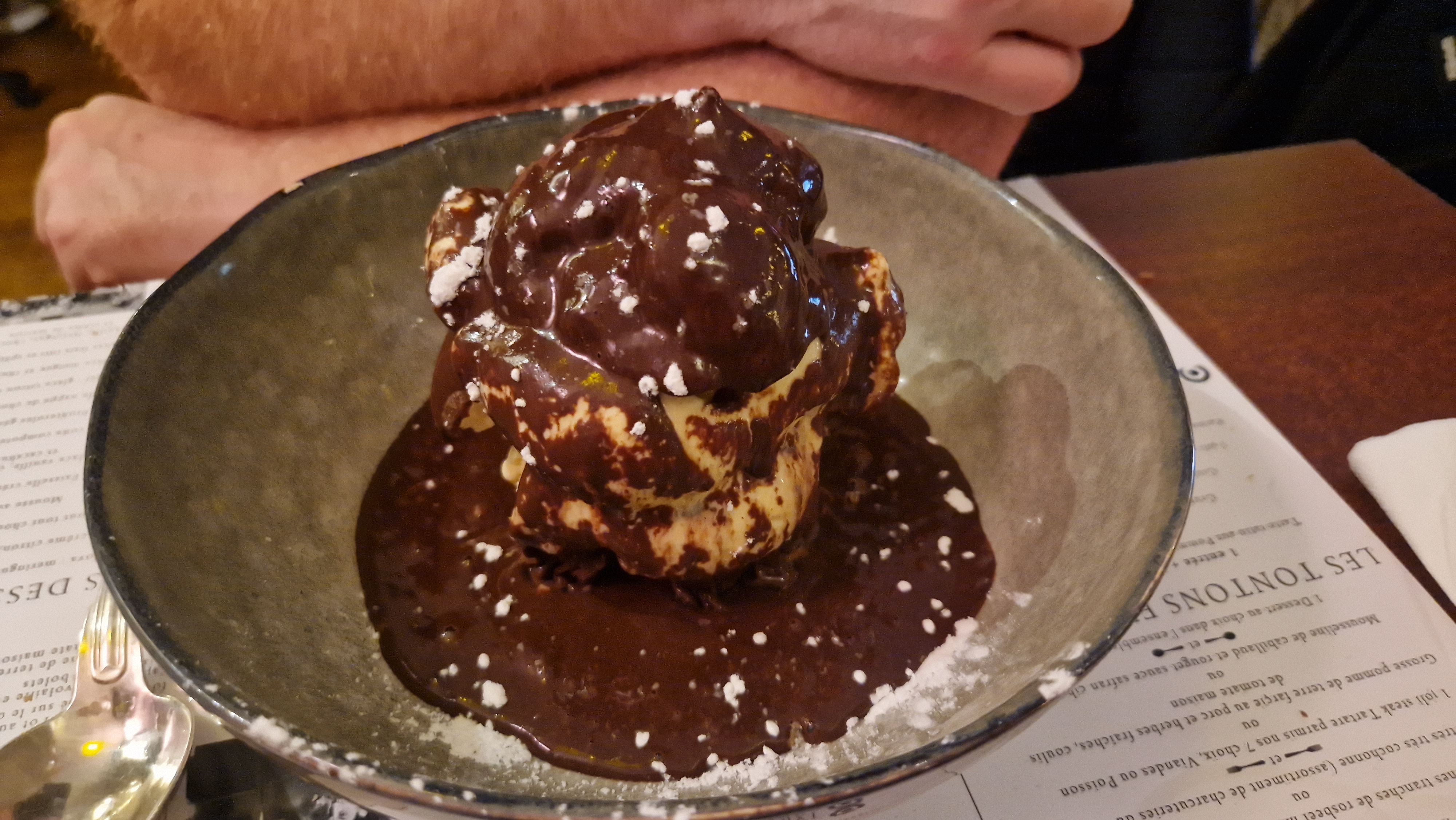 Une tuerie ce restaurant. Des plats plutôt traditionnels proposés, qui sont tellement bien cuisinés. On y revient tout seul dans l'assiette. C'est généreux et gourmand, un véritable régal et les quantités sont démentes. Pour finir.. des profiteroles de l'espace qui auront fini de m'achever. Le petit rhum arrangé de clap de fin, offert, passe tellement tout seul qu'on aurait envie de se descendre la bouteille sur place. On y reviendra vite !