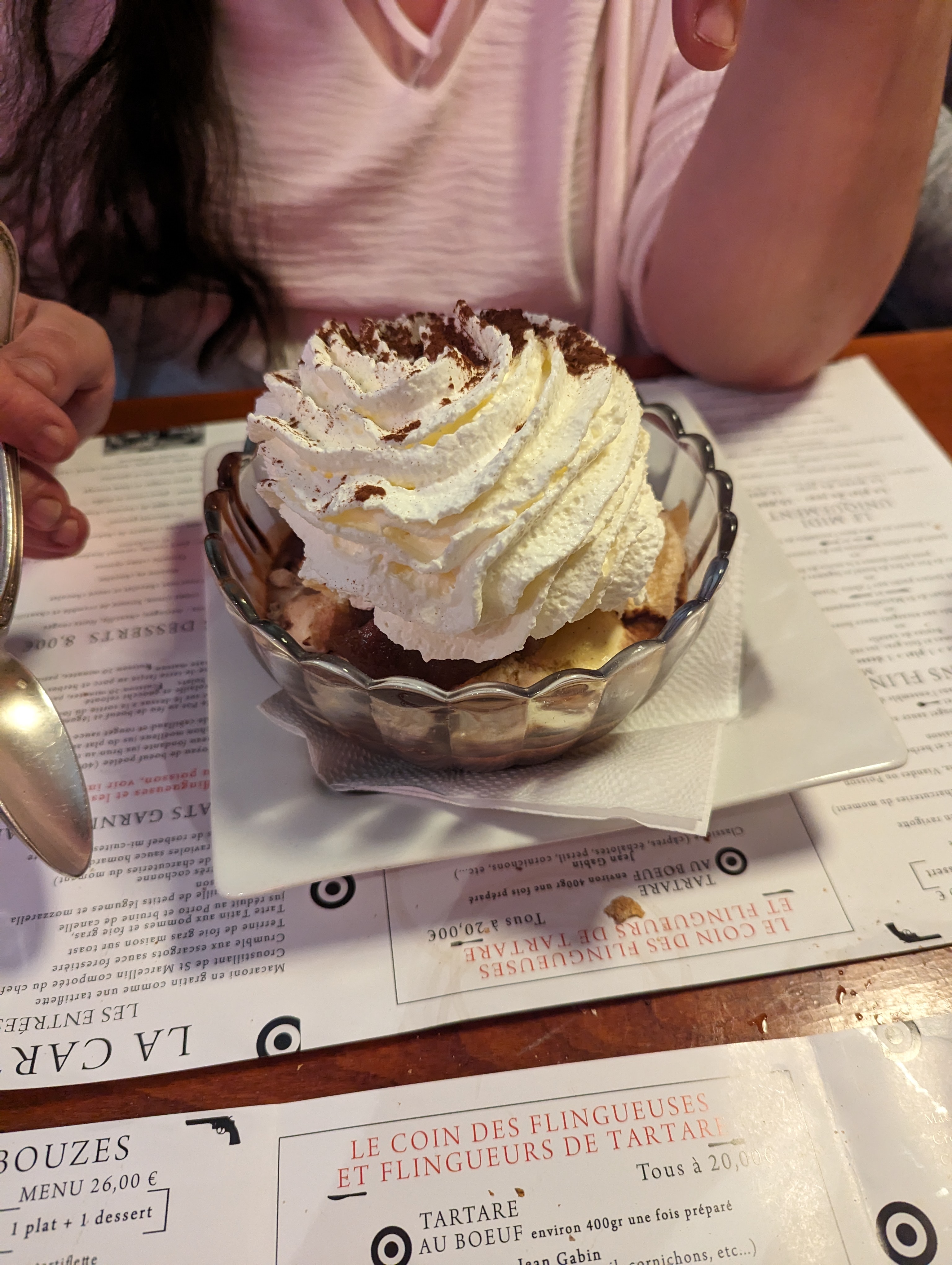 Personnel sympa, c'est bon et copieux, les profiterolles méritent leur nom de géantes. Et le petit rhum arrangé offert est la cerise sur le gâteau. Seul bémol, la salle est bruyante.