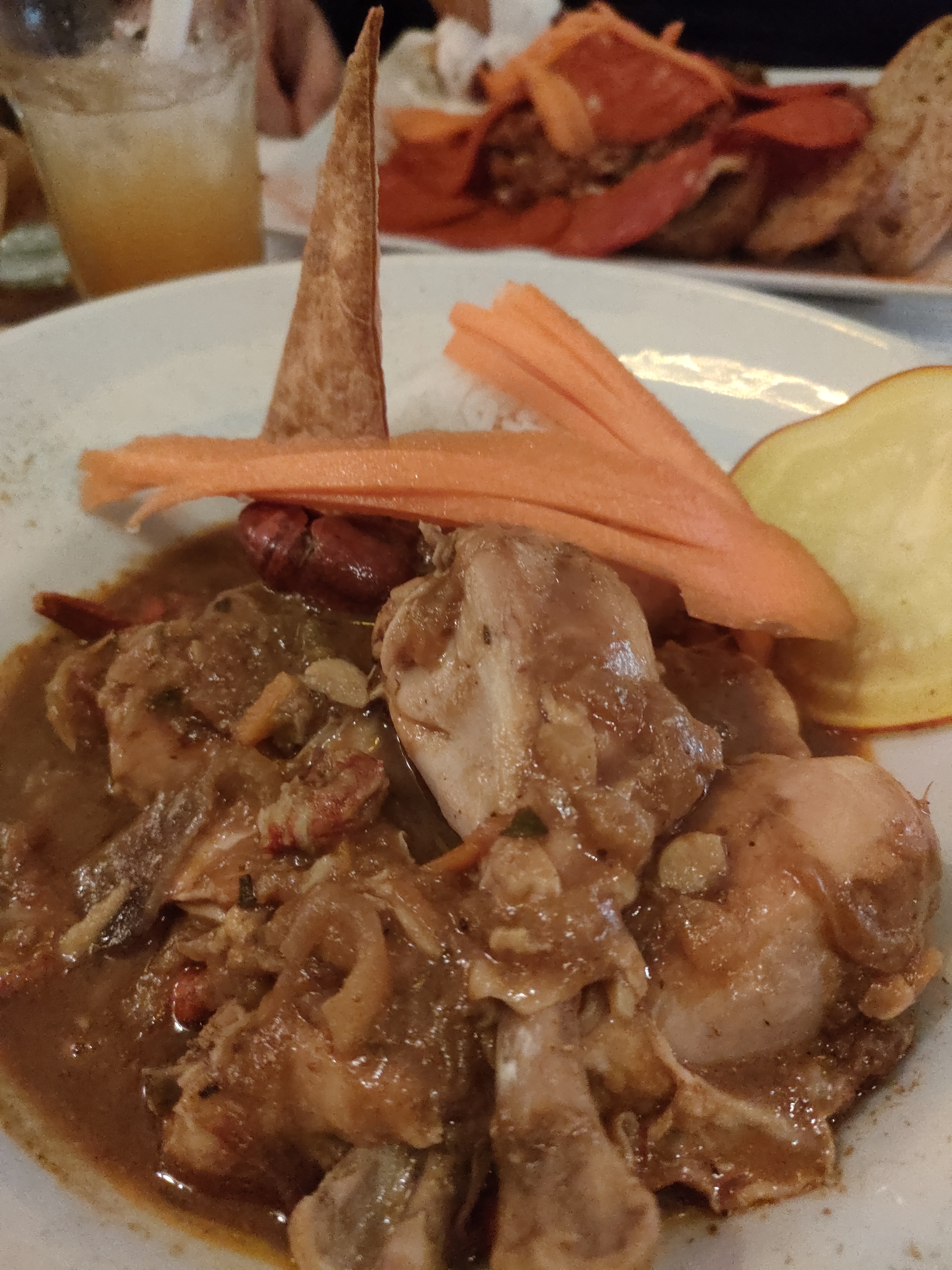 Restaurant stylé, ambiance sympa et bon accueil, plats hyper copieux (trop) . Venez le ventre vide !!!! D'au moins 2 jours si vous voulez survivre à de telles quantités ou alors prenez un plat pour 2 . Ne mangez pas les cacahuètes..... . Serieusement, c'est vraiment trop copieux mais bon . Un super accueil et le rhum arrangé est super. Merci pour ce bon moment .