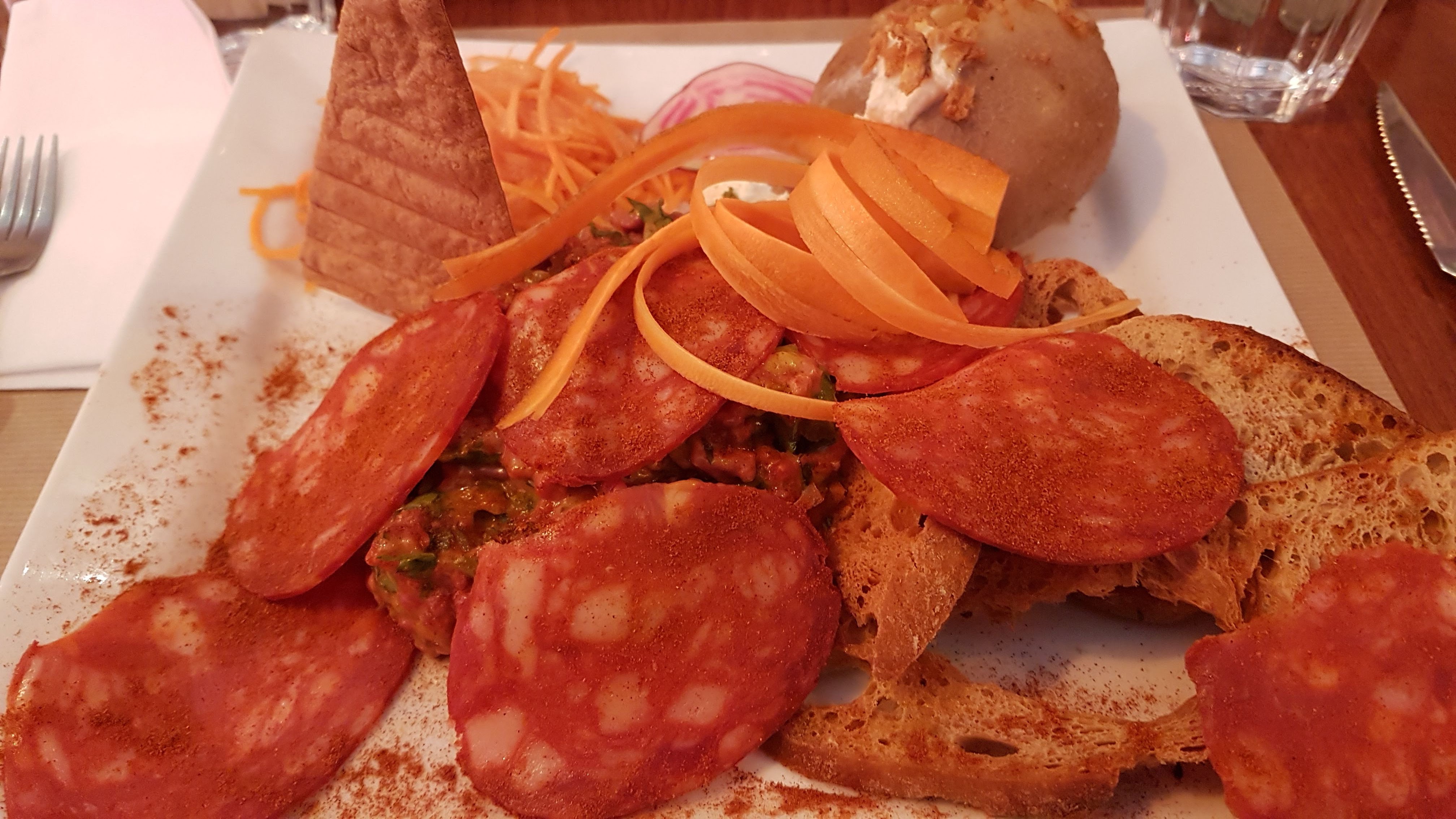 Très bon, TRÈS COPIEUX, si vous voulez beaucoup et bien manger allez-y vous ne serez pas déçu. Photo 1: tartare au chorizo. Photo 2 : foie gras