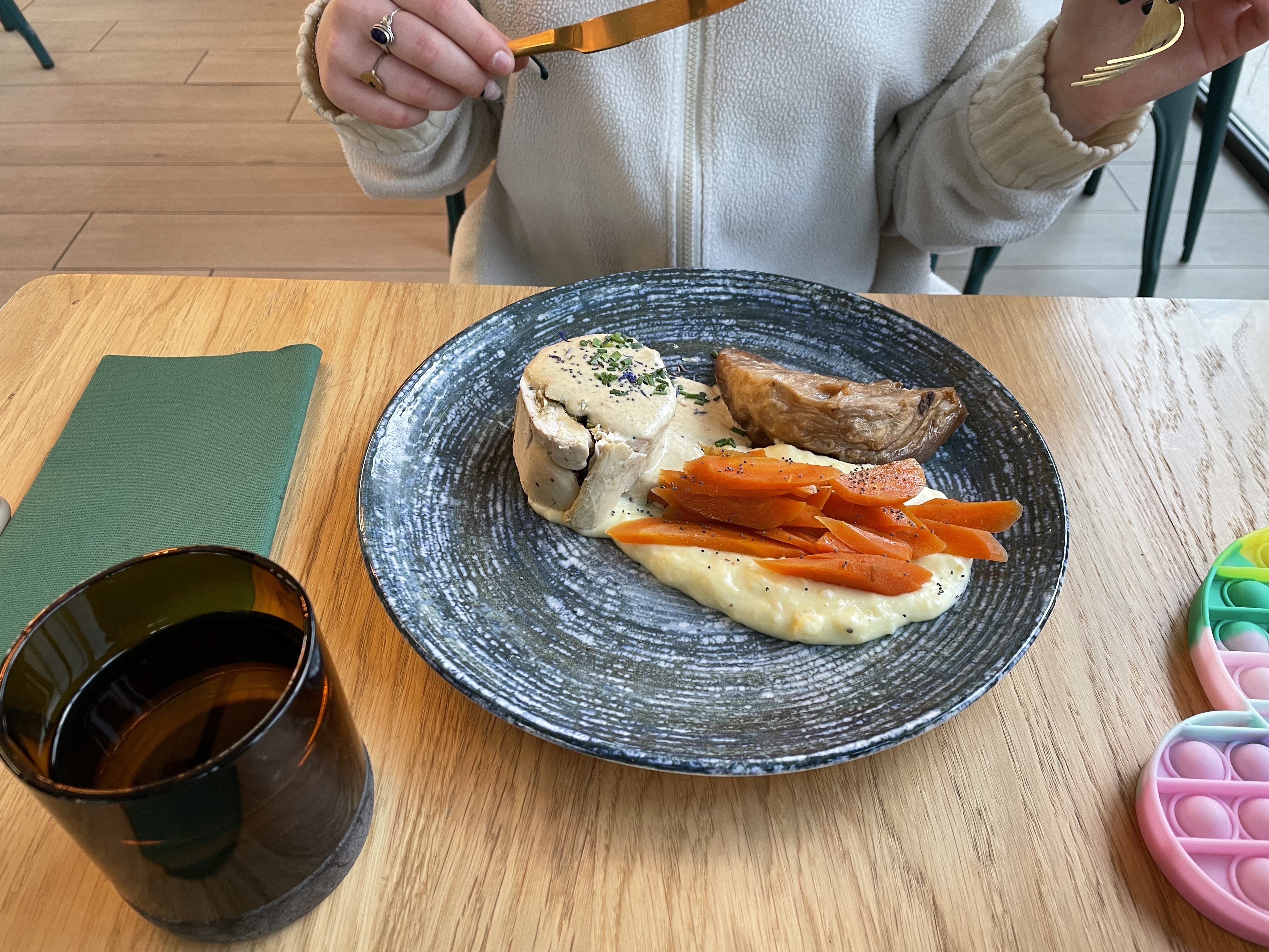 Service EXTREMEMENT LENT. J’ai pris un menu à 29€, entrée plats et dessert, l’entrée un œuf parfait sauce forestière (bien mais aurais pue mieux trouver) en plats; un suprêmes de volaille accompagné de purée et sauces vignerons( la volaille trop cuite, trop sèches, la purée il y a trop de crème dedans, on ne sent même pas le cours de la pdt, niveaux légume peut mieux faire il y avais deux petit bouts de navet et un malheureux bout de carotte. Mais où sont les légume ? )