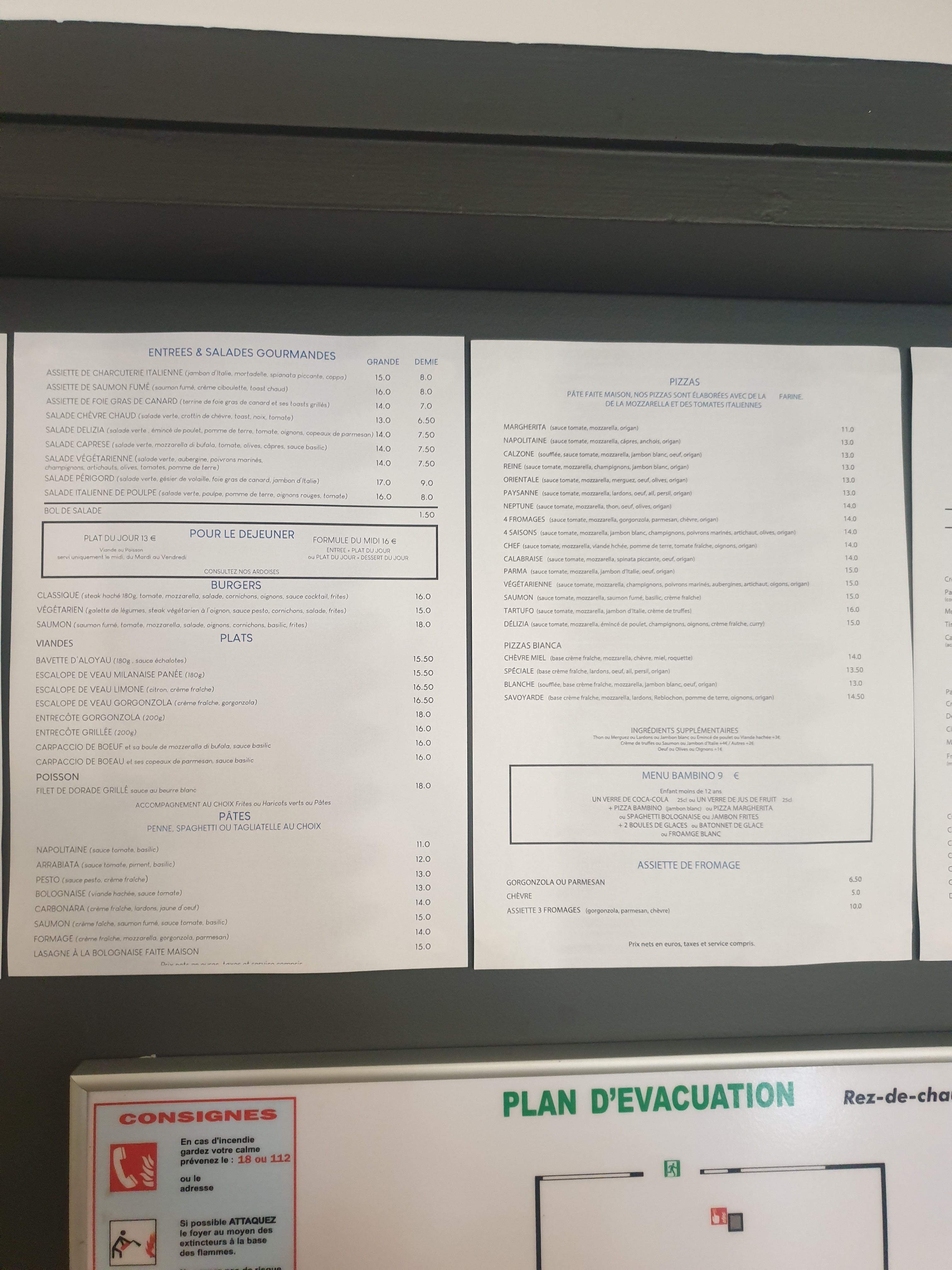 Très beau restaurant il font un menu du jour. J ai pris une pizza elle été grande et croustillante. Je reviendrais