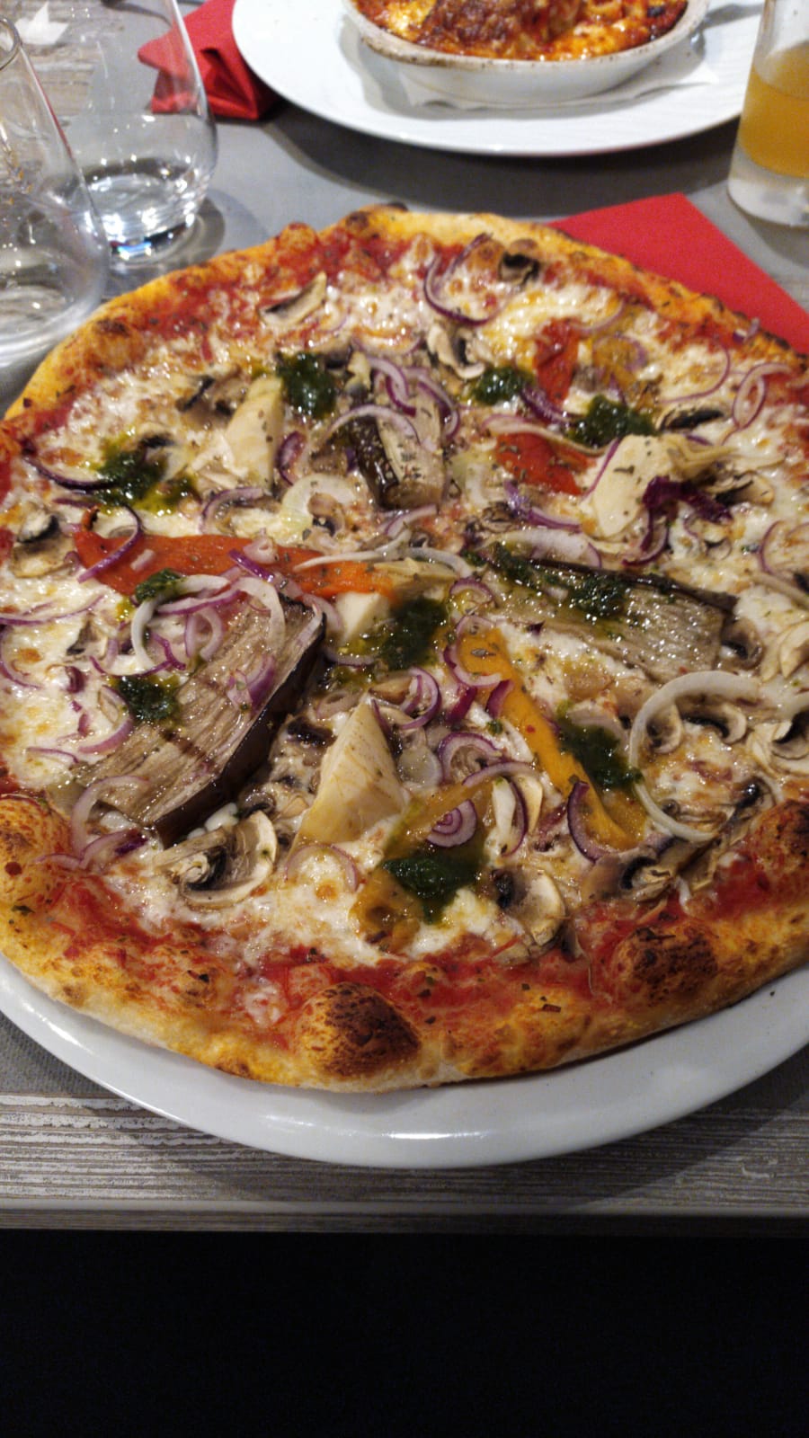 De passage à l’hôtel voisin, nous avons dîné dans ce restaurant italien, satisfaits, nous y sommes retournés le lendemain soir, et nous y retournerons lorsque nous reviendrons à Arpajon. Car l’accueil y est fort sympathique et tout le personnel est dévoué, attentionné et souriant, côté assiette nous avons très bien mangé, les produits sont de qualité et la cuisine est savoureuse (les pizzas sont excellentes et copieuses). Le vin fut divin, mais n’est servi que au verre ou en bouteille de 75cl, la bière quant à elle peut-être servie en 25 ou 50cl à la pression (donc il y a une injustice en faveur de la bière :D ). La salle est un peu sonore, mais l’ambiance est jeune et décontractée, donc ça cadre. C’est vraiment une adresse précieuse pour la ville et ses visiteurs et je la recommande avec enthousiasme 👍🏻.