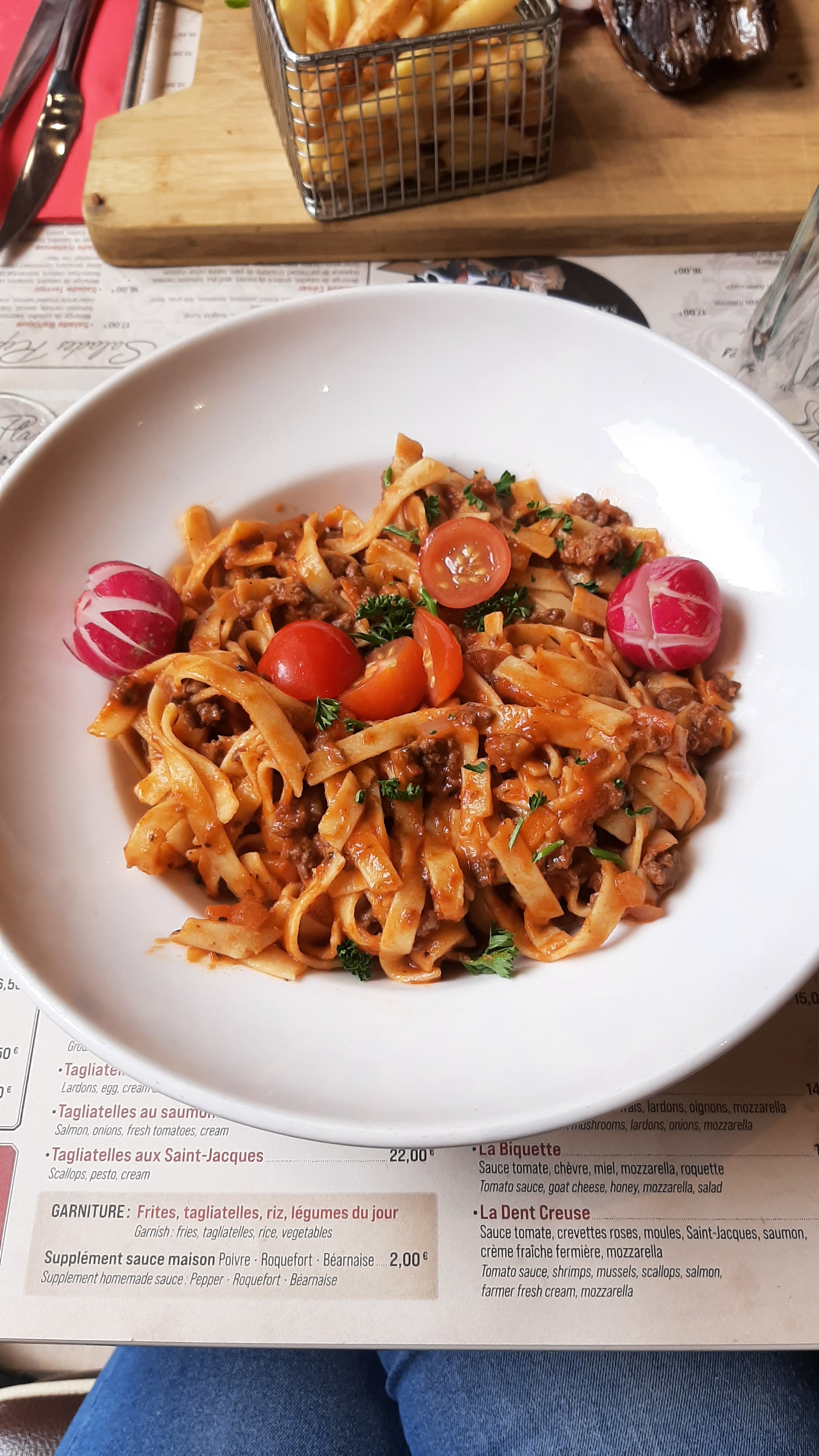 Pour ma part j'ai souhaité prendre des moules frites. Lors de l'apéritif, j'ai constaté l'assiette d'autres tables ayant pris ce plat. Les moules ne me faisent franchement pas envie et les frites n'étaient pas maison. J'ai trouvé ça dommage. Finalement je me suis rabattue sur une pizza la chique. Sincèrement grosse surprise. Très très très bonne. Pâte fine, charcuterie de qualité. Mon compagnon a pris un hamburger. Il était satisfait de la viande. Service très correct.
