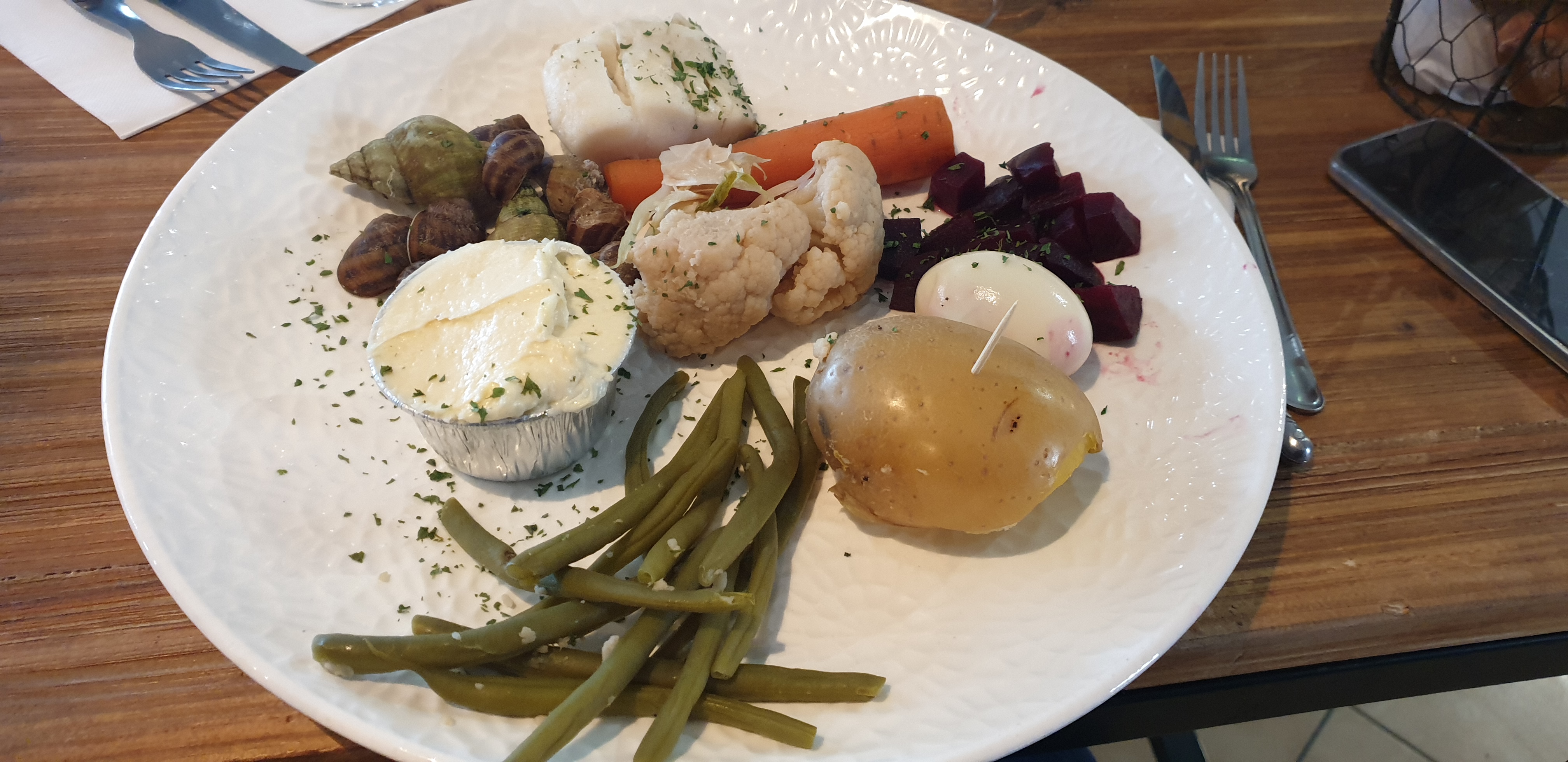 Assiette d'aioli prise le midi. A vous de juger la photo. Un menu entree + plat ou plat + dessert serait sympa. J'ai mis 4 étoiles pour le cadre qui est vraiment agréable.