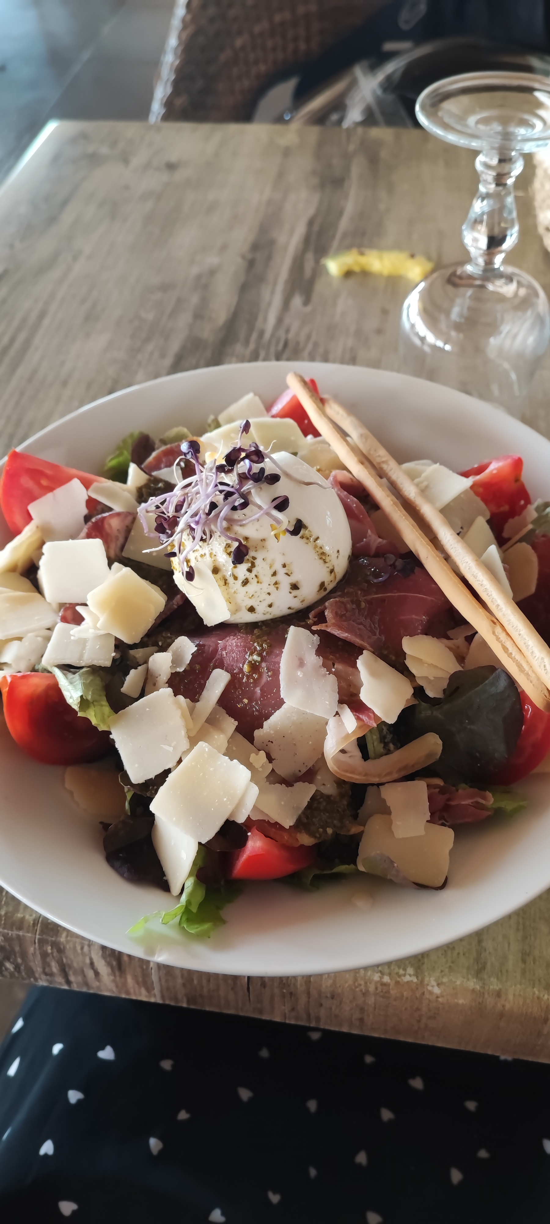 Les jeunes serveurs sont très agréable et sympathiques, j'ai de la peine pour eux qui doivent servir des plats aussi médiocre. Cadre sympathique malgré une table bancale. Nous avons commandé la seule option végétarienne, la salade fromagère, qui est arrivée avec de la viande. 20e pour des sticks mozza encore surgelés, pas cuits, des tomates et de la salade coupées très grossièrement, c'est honteux. À fuir !