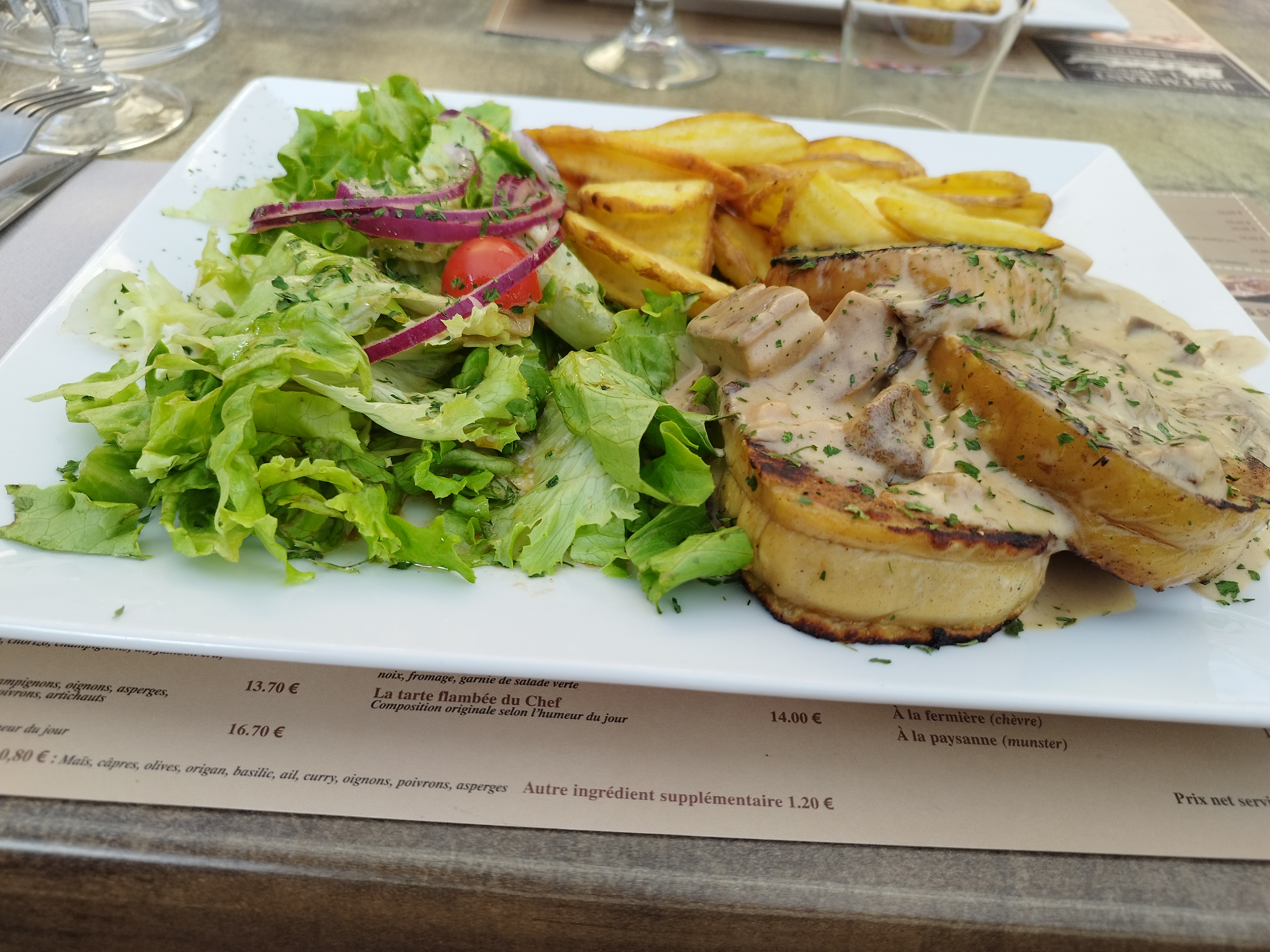 Nous avons vraiment très très bien mangé ! (Surtout la salade au saumon, je n’ai jamais goûté une vinaigrette aussi bonne ) ! C’était parfait de l’entrée au dessert ! Et un grand merci au serveur qui était vraiment professionnel !