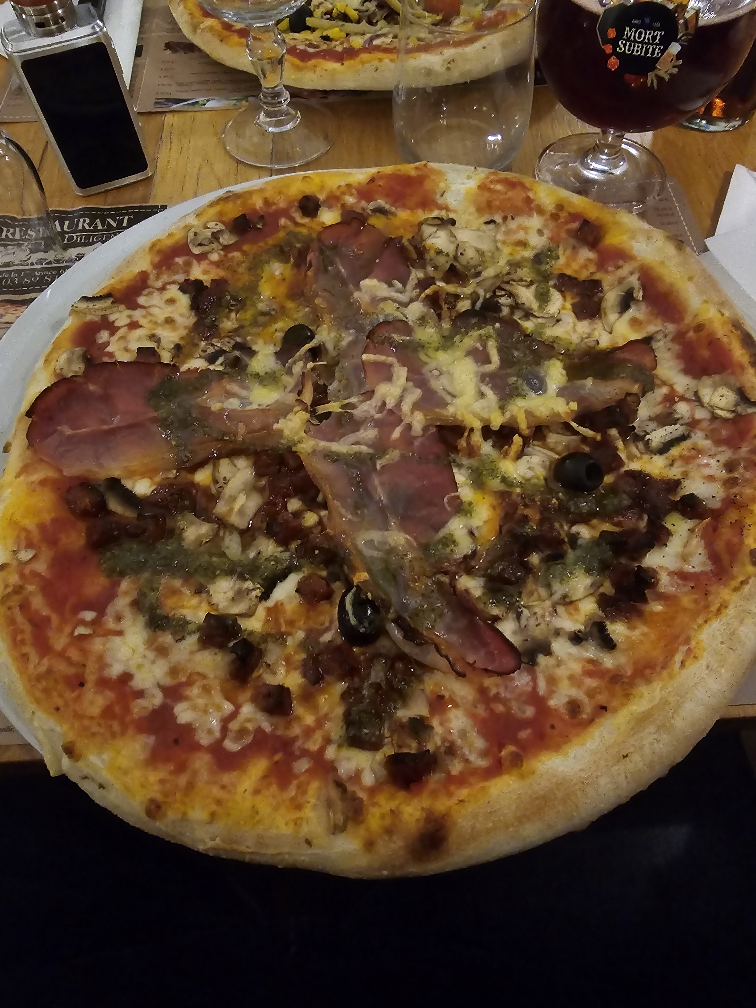 Très bon je vous conseille. Attention pensez à réserver . Pizza pour moi et repas du jour ( soupe et fleischnacka) pour ma collègue