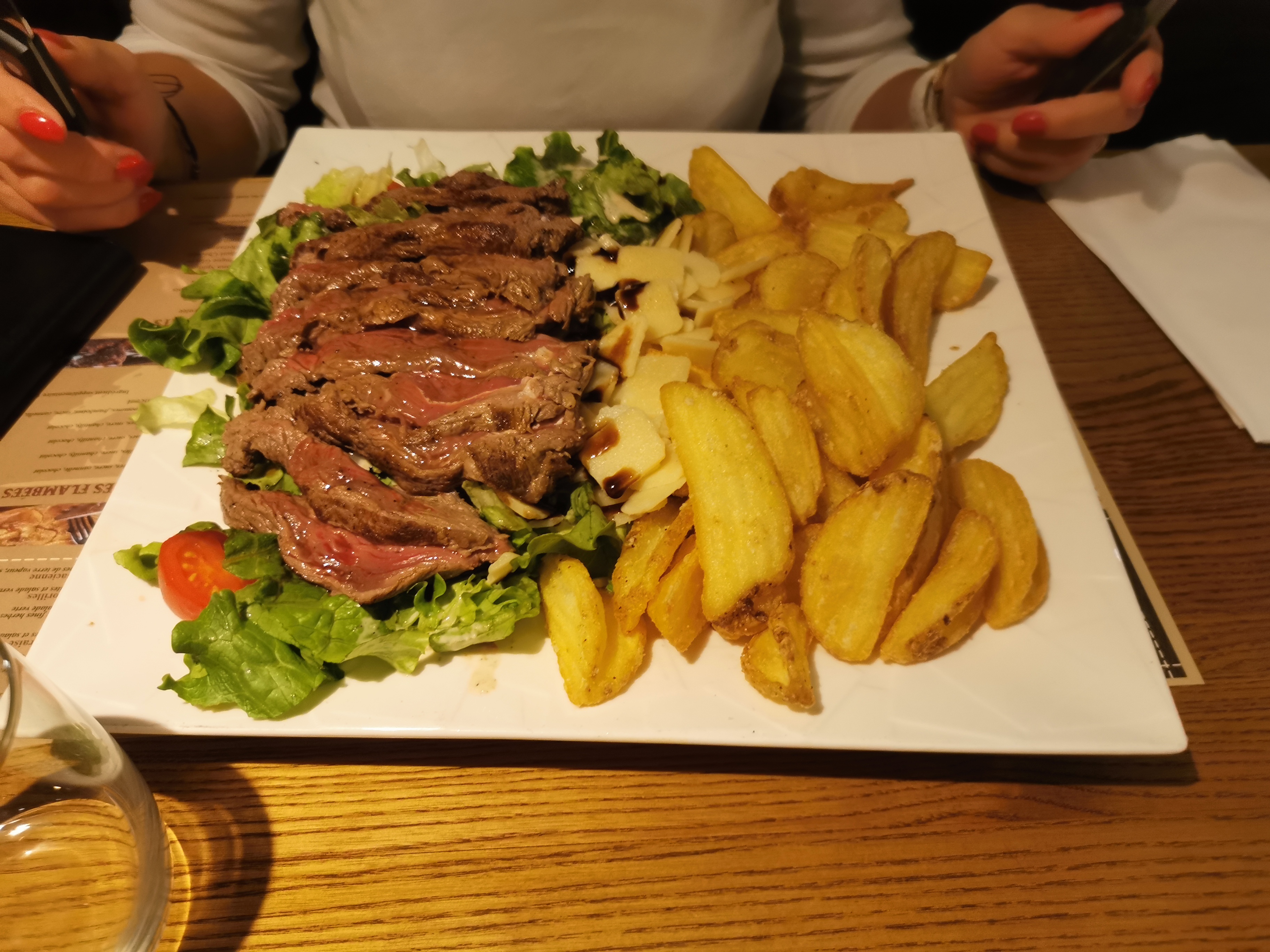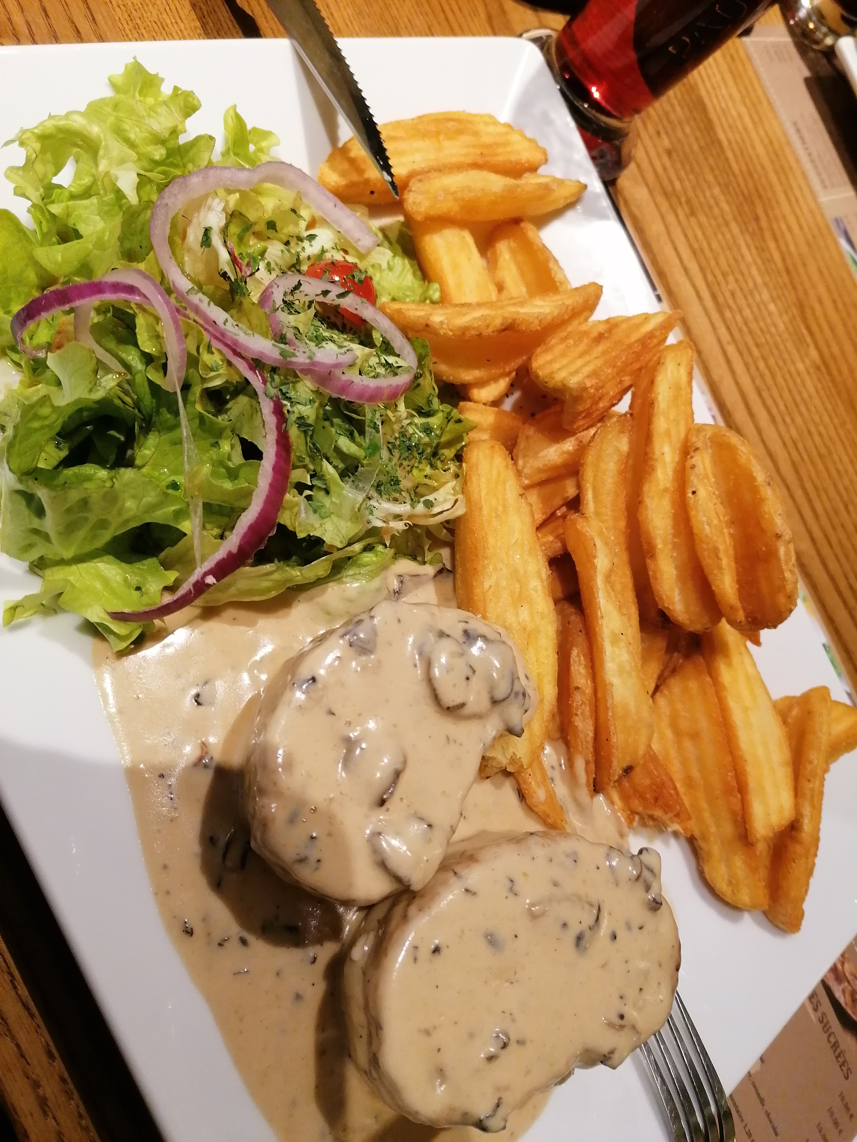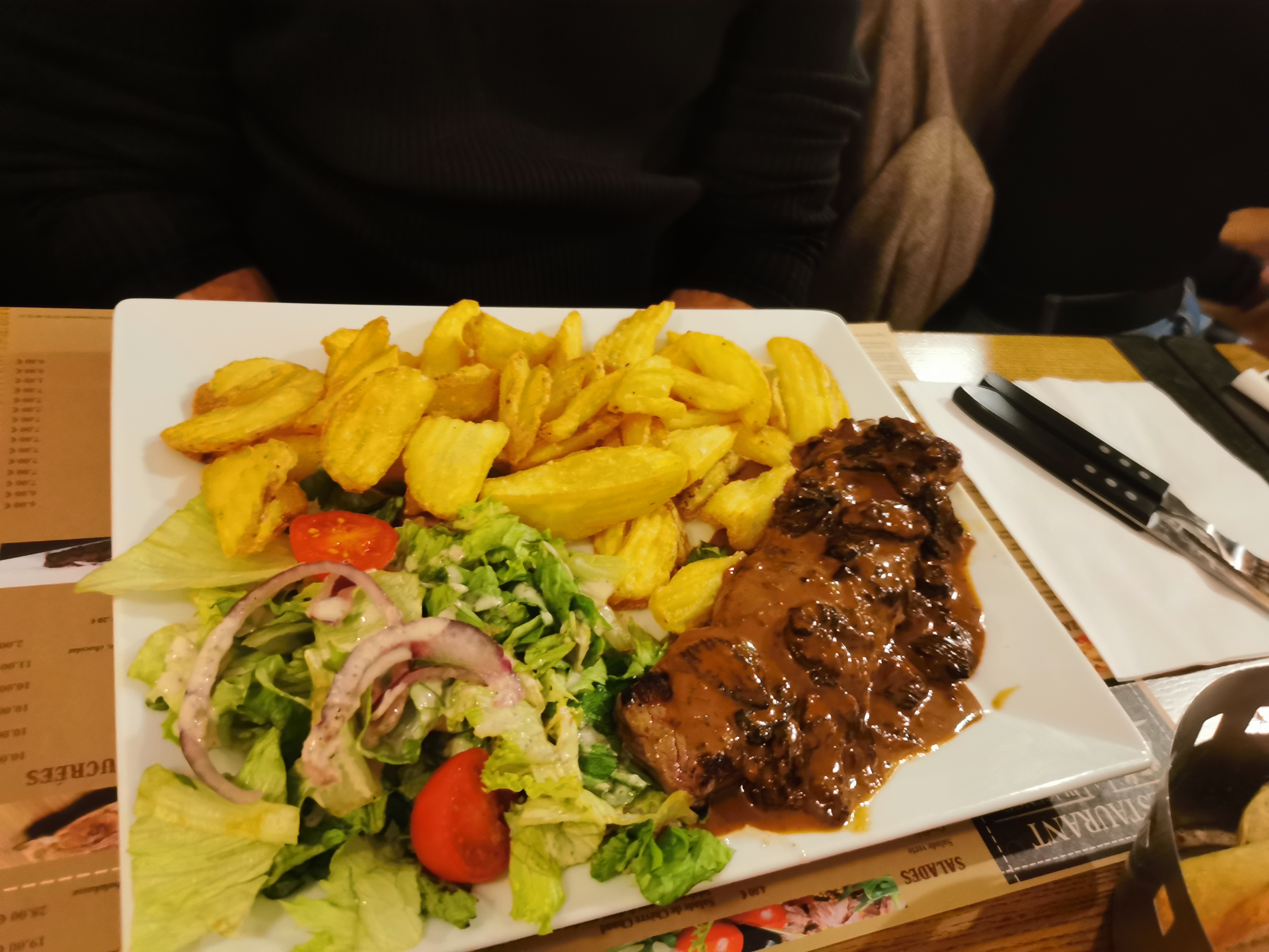 Rien à dire parfait, l'entrecôte était cuite comme je voulais, la sauce morilles était excellente et ces frites 🍟 maison parfaite .