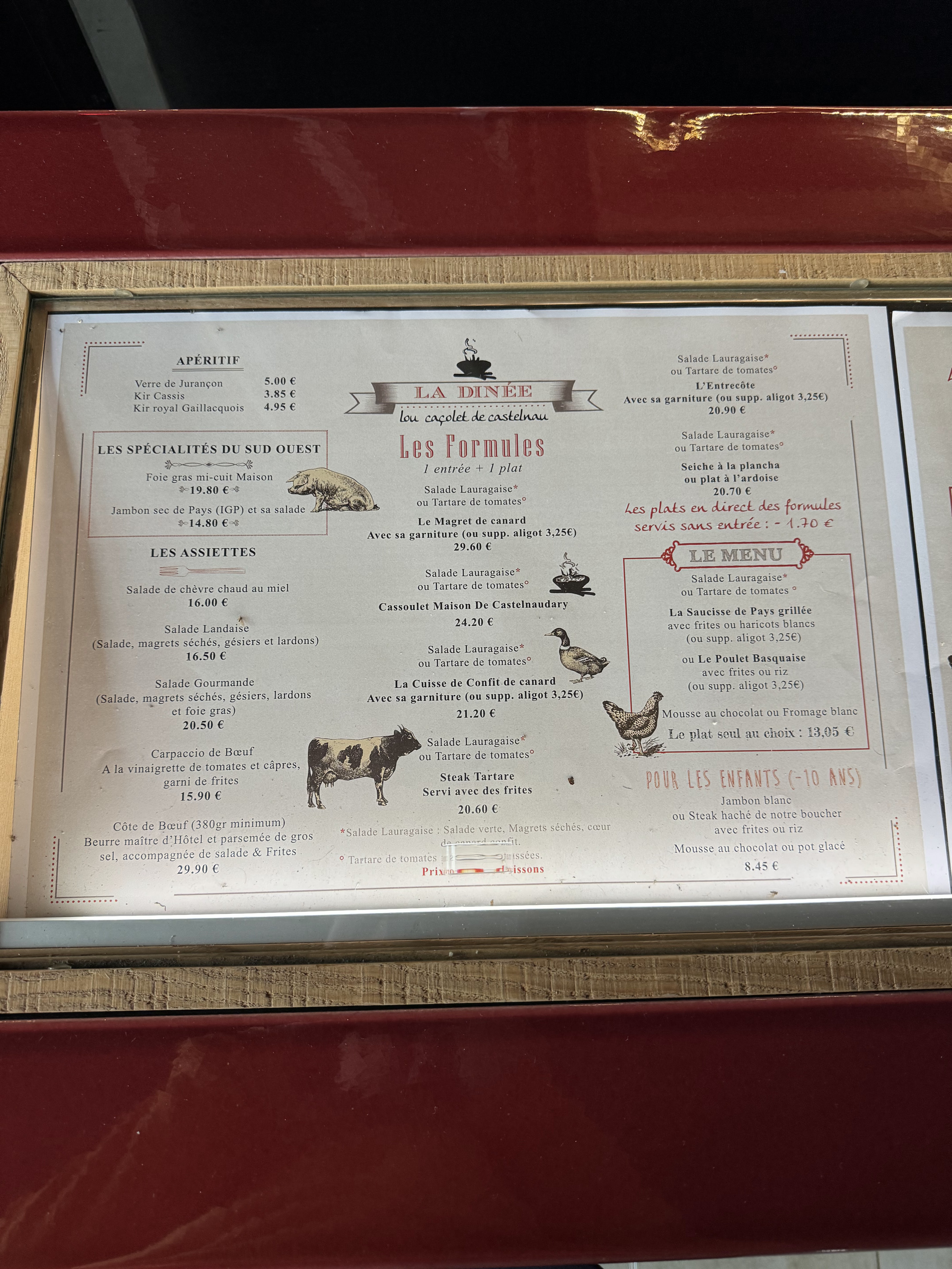 Très décevant par rapport à ce que nous avions connu il y a 10 ans. Nous nous arrêtions pour le cassoulet et la déception fût de taille : 1 ridicule et insipide manchon de canard au lieu de la cuisse confite, 1 saucisse de Toulouse sans goût et à part ça des haricots et du gras. Et la Cassole attachée et brûlée au fond. Je ne vous recommanderai pas cette cuisine.