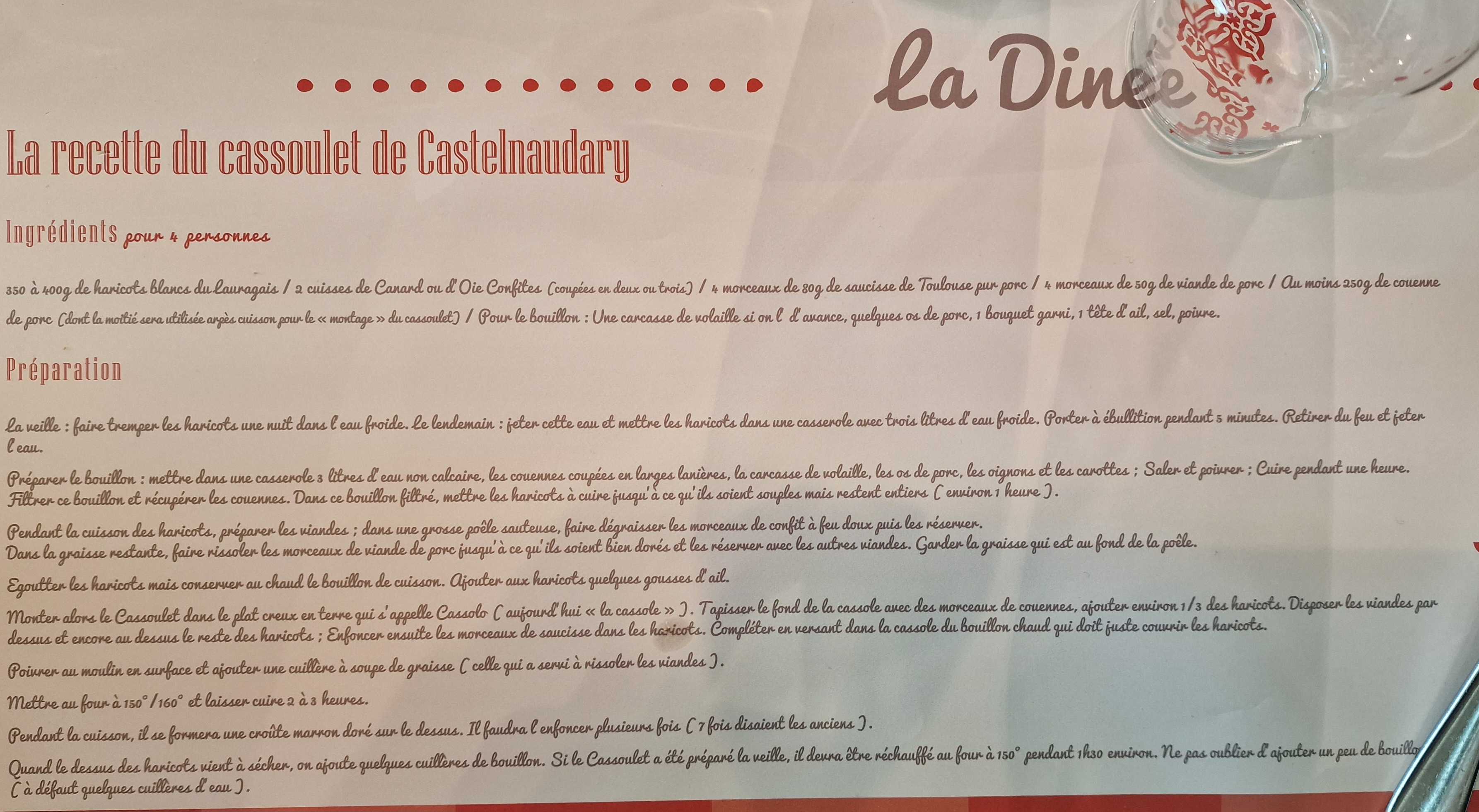 Test d'un candidat du championnat du monde du cassoulet, pas déçu du leur il est très bon La salle est très bruyante en revanche