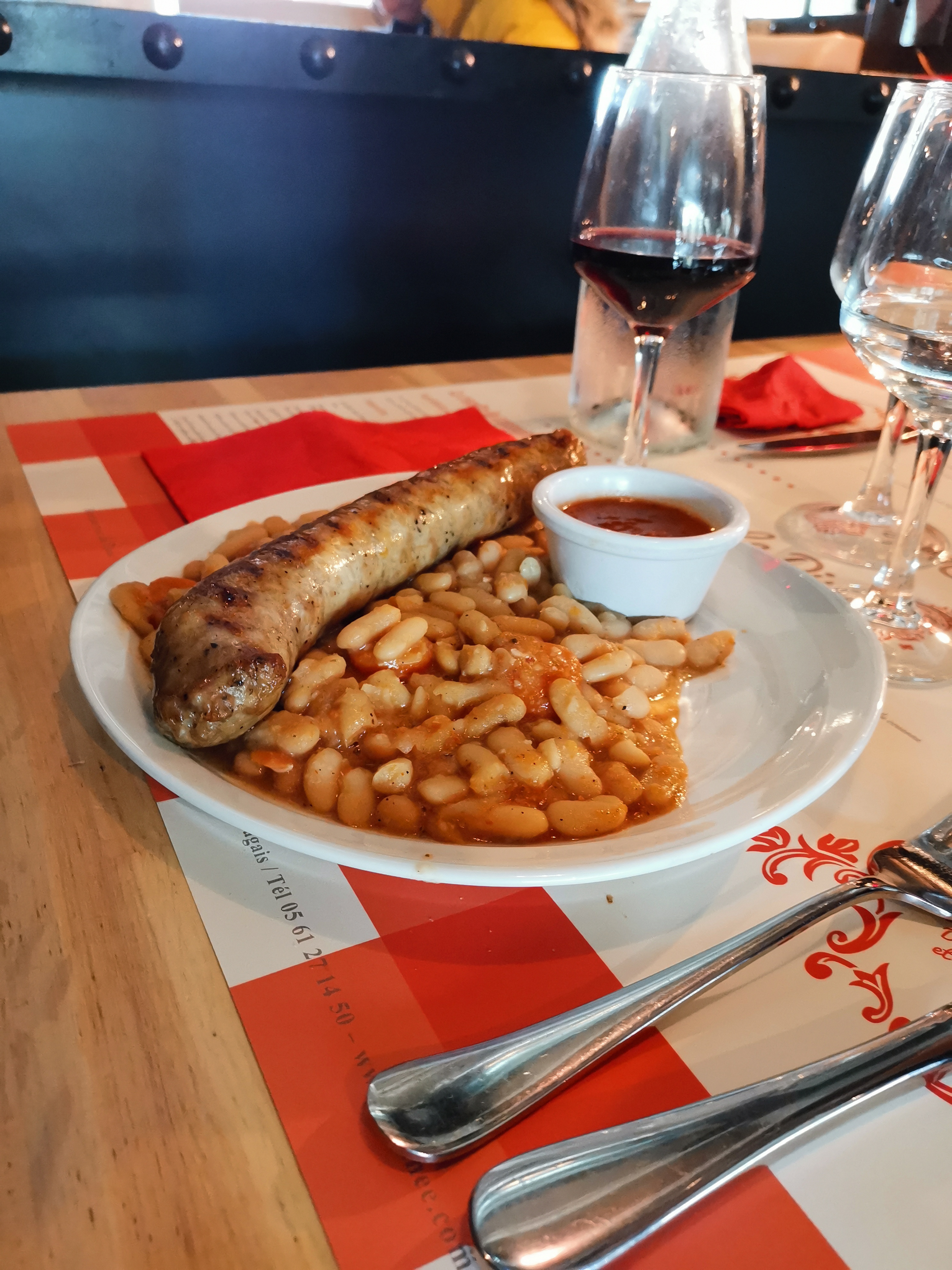 Cuisine correcte et copieuse Au menu ,que la saucisse (bonne) ,pas autre chose. Service assez efficace Sol de la salle à manger avec moquette...pas propre et pas hygiénique mais bon.... Le cassoulet servi au voisin de table semblait correct