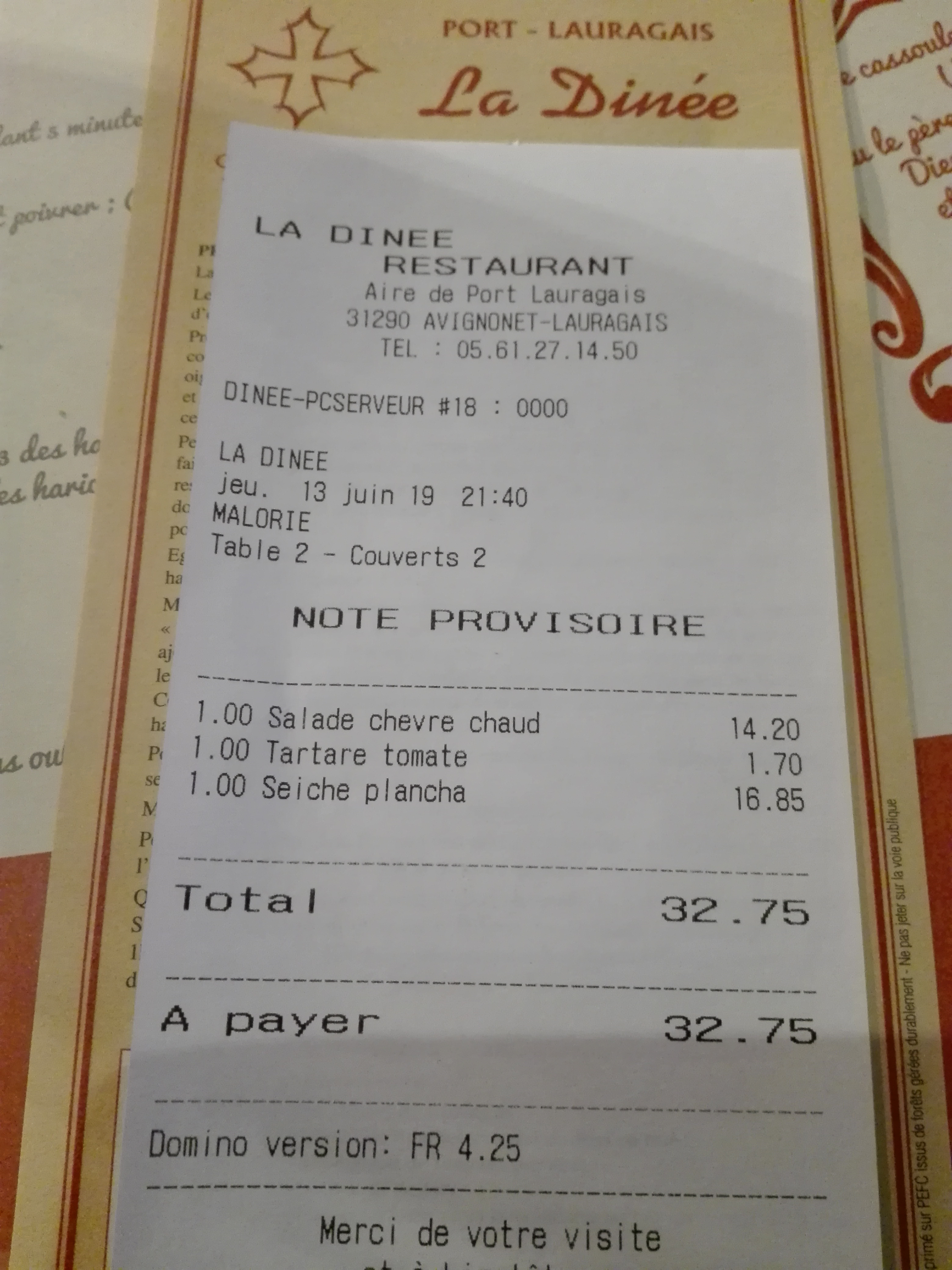Ce restaurant est tout près à pied de l hôtel de l aire de repos entre Toulouse et Carcassonne où se trouve aussi le Canal du Midi. Le resto reste un peu cher mais le vin du coin, en pichet, est très bon. Ce resto ne propose pas de potage pour le repas du soir, c est dommage quand on est bien fatigué par la route du jour .
