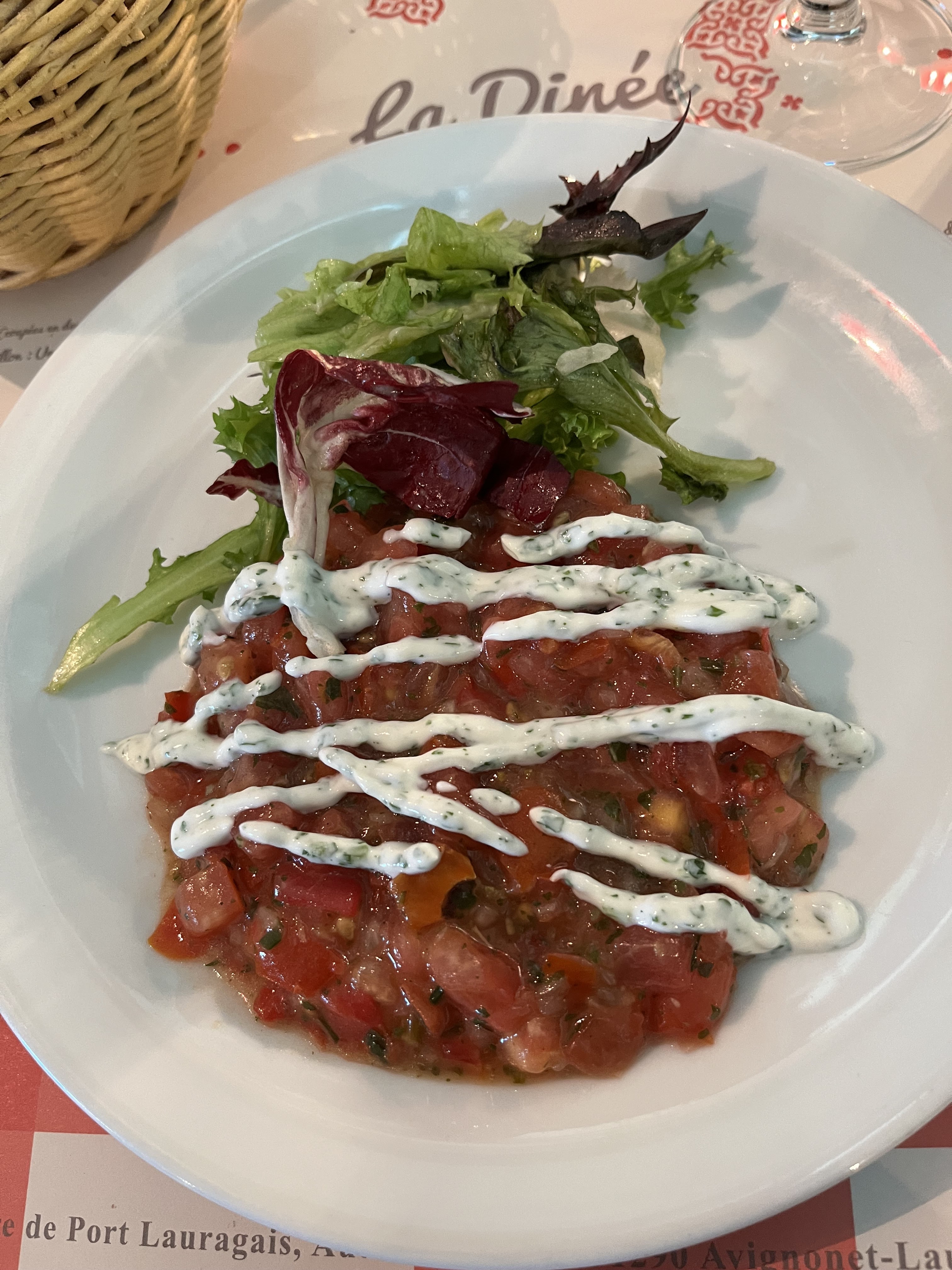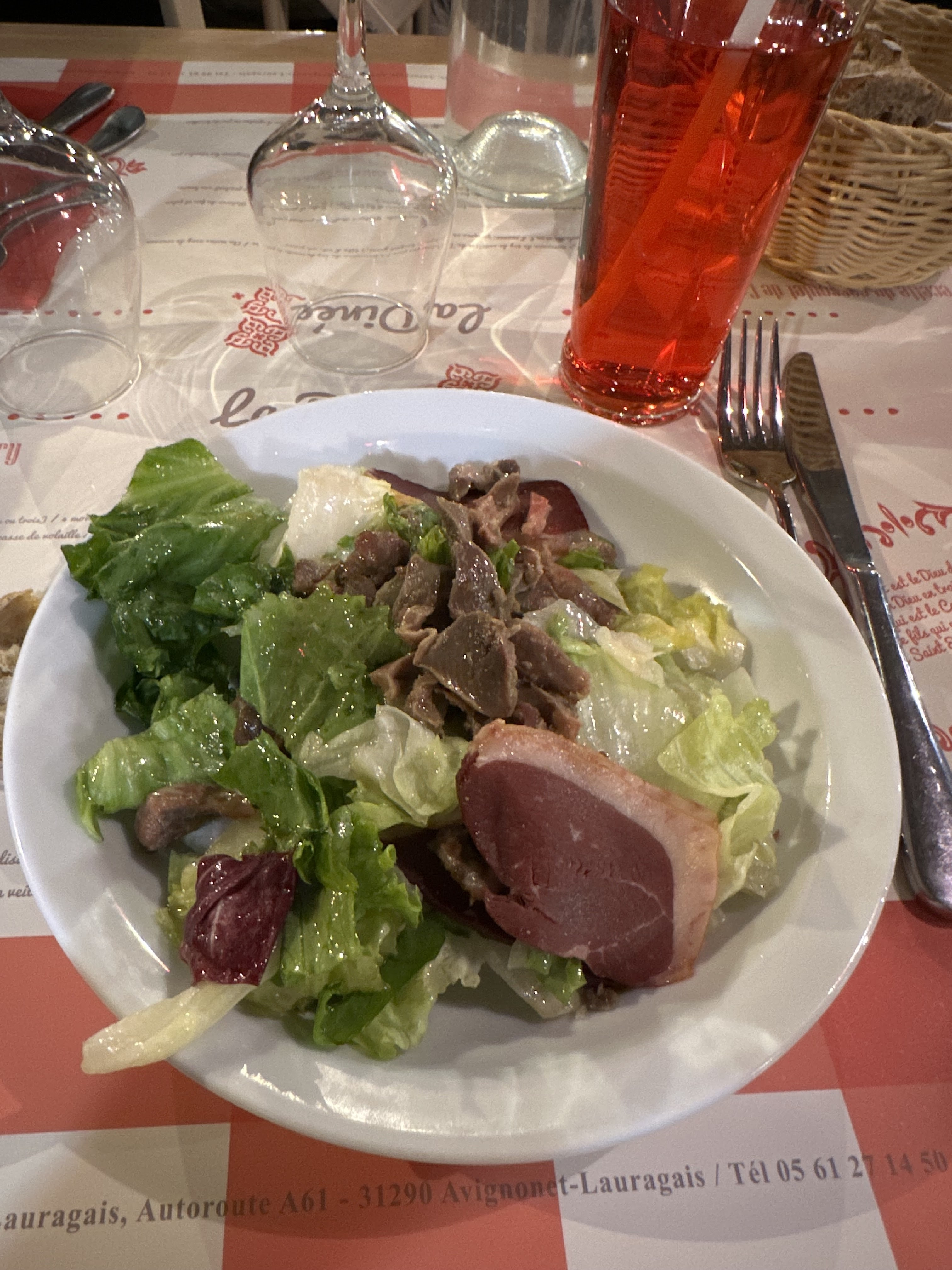 A fuir ! Salade Lauragais pas assaisonnée, sans goût avec plein de salade et 2 petites tranches de magret fumé et des petits morceaux de cœur de canard. Le poulet basquaise n’a que le nom, une cuisse de poulet avec un peu de ratatouille en boîte à côté, rien de mijoté ensemble. Le dessert, vulgaire mousse au chocolat industrielle, sans goût. Ce n’est même pas digne d’une cafétéria !