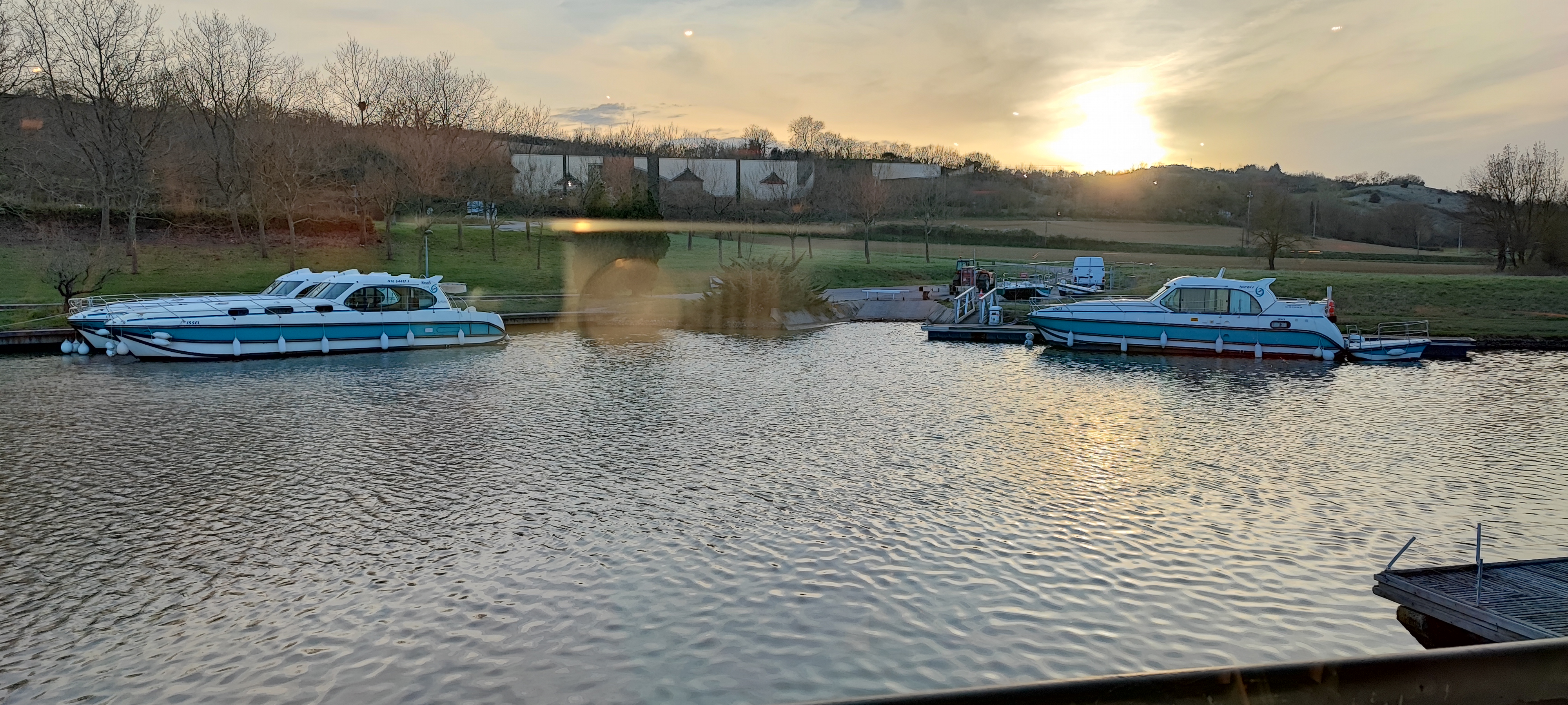 Établissement situé dans un cadre de verdure, proche du canal du midi, avec vue sur le port de Laraugais.