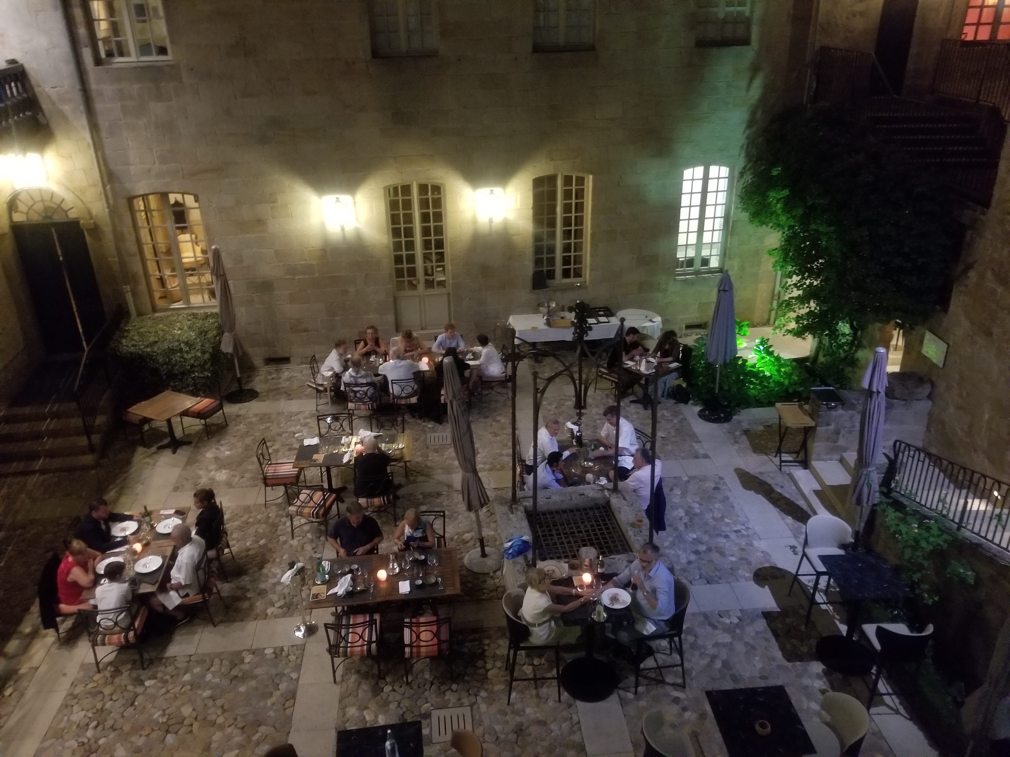 J’ai diné dans ce restaurant un soir lors d’un séjour en ville. Le cadre est incroyable : dans une cour intérieure située dans un bâtiment historique. Le service est exceptionnelle, le personnel est aux petits soins. En ce qui concerne la nourriture, l’établissement propose une cuisine gastronomique. Les plats sont de bonnes qualités, mention pour le canard en trois façons (en particulier le parmentier) ou le maigre façon bouillabaisse. Petit défaut, des portions un soupçon petites. Et la proposition globale reste très classique. Bref, un bon repas avec un excellent service dans un cadre remarquable.