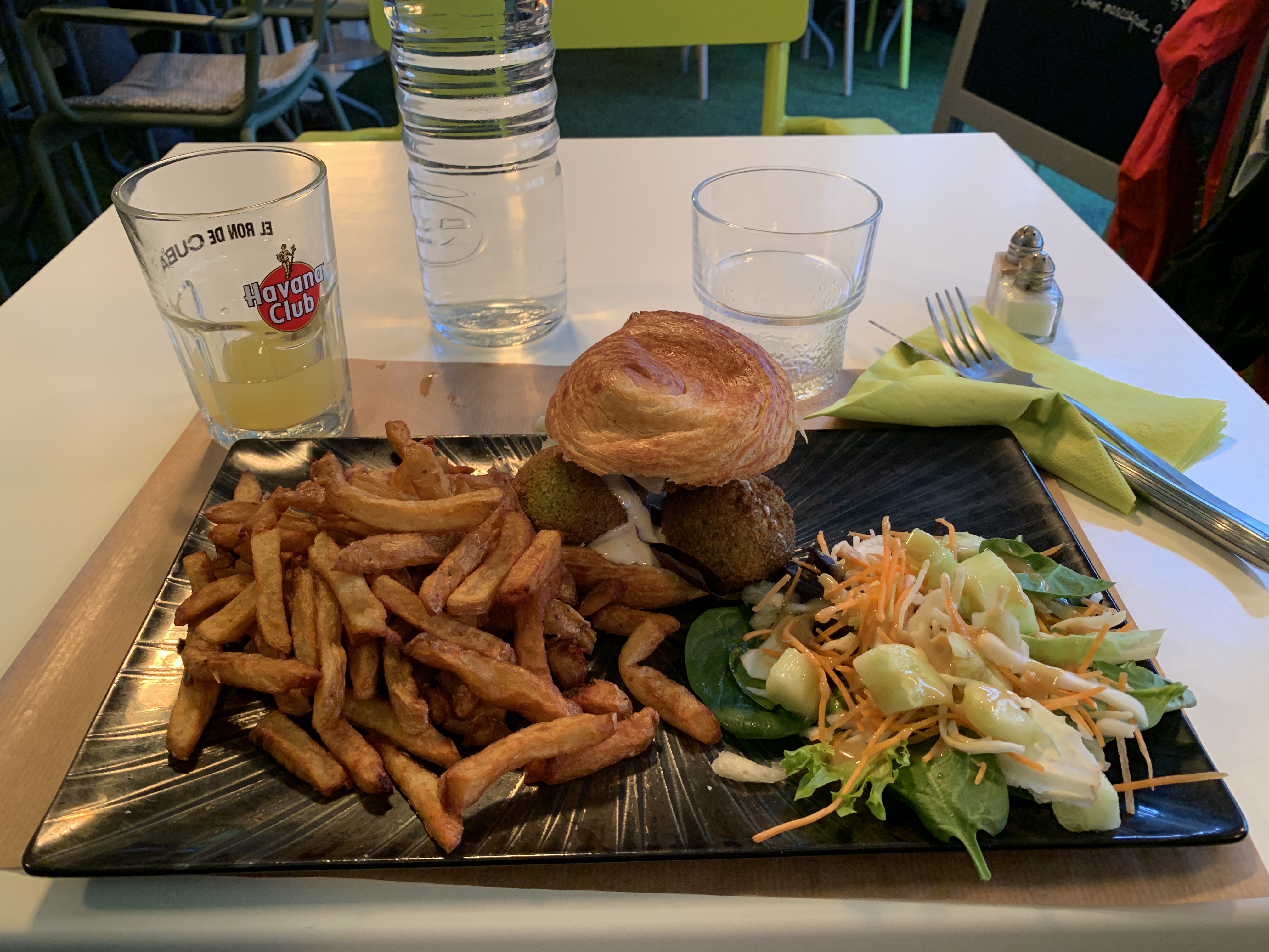 Super accueil, très bonne ambiance et décoration. Les portions sont très généreuses. Le burger aux falafels était absolument parfait. Une super adresse à connaître, j’y reviendrais avec plaisir.