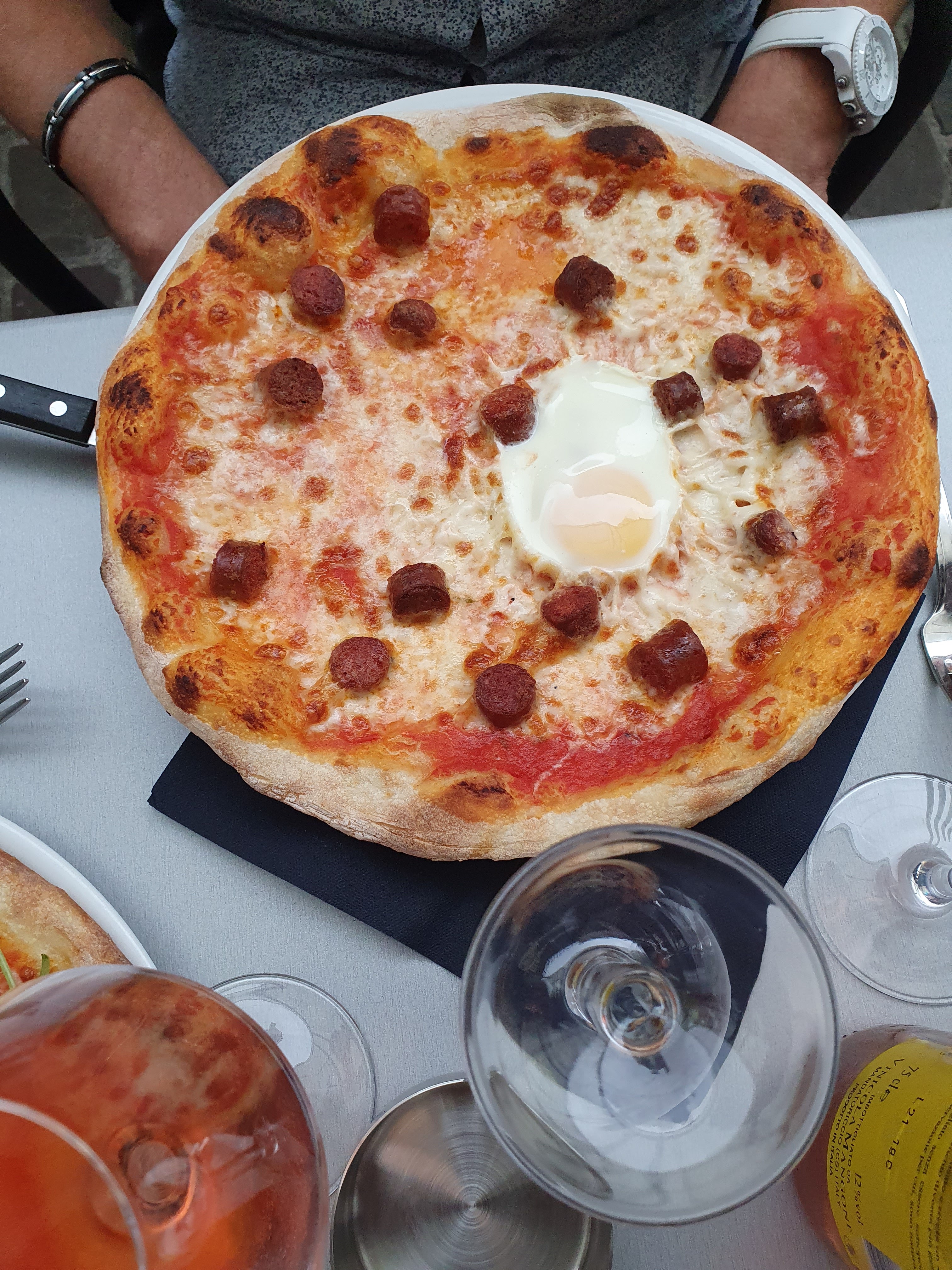 Très bons produits. Les pizzas sont particulièrement bonnes tout comme les spritz. Les patrons sont parfois lunatique mais les serveurs sont très sympas !