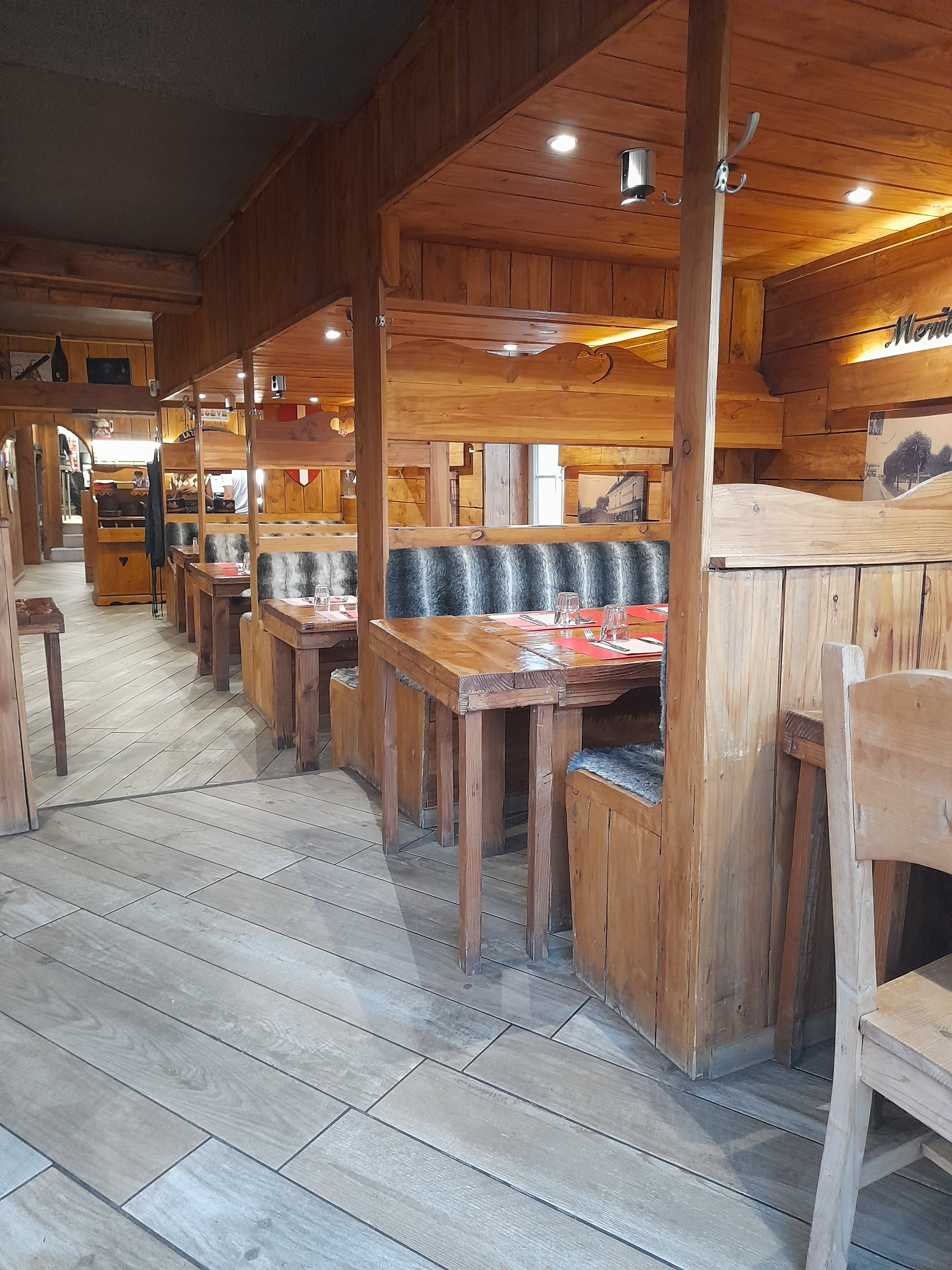 super restaurant a l'ambiance refuge de montagne ,serveurs et serveuses sympathique et service rapide ,la tartiflette était excellente 🤞👍 chaque table porte le nom d'une station de ski .