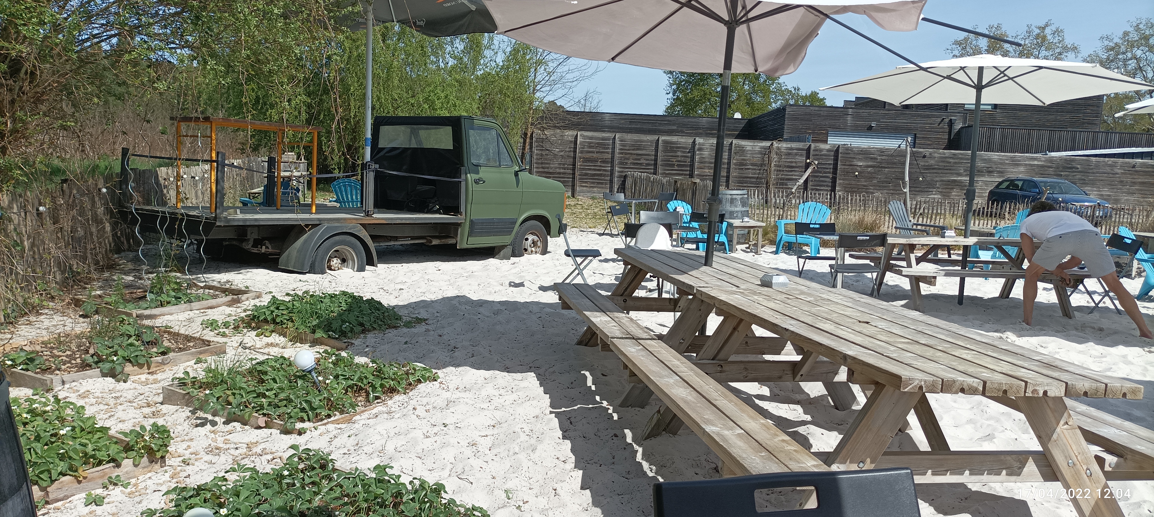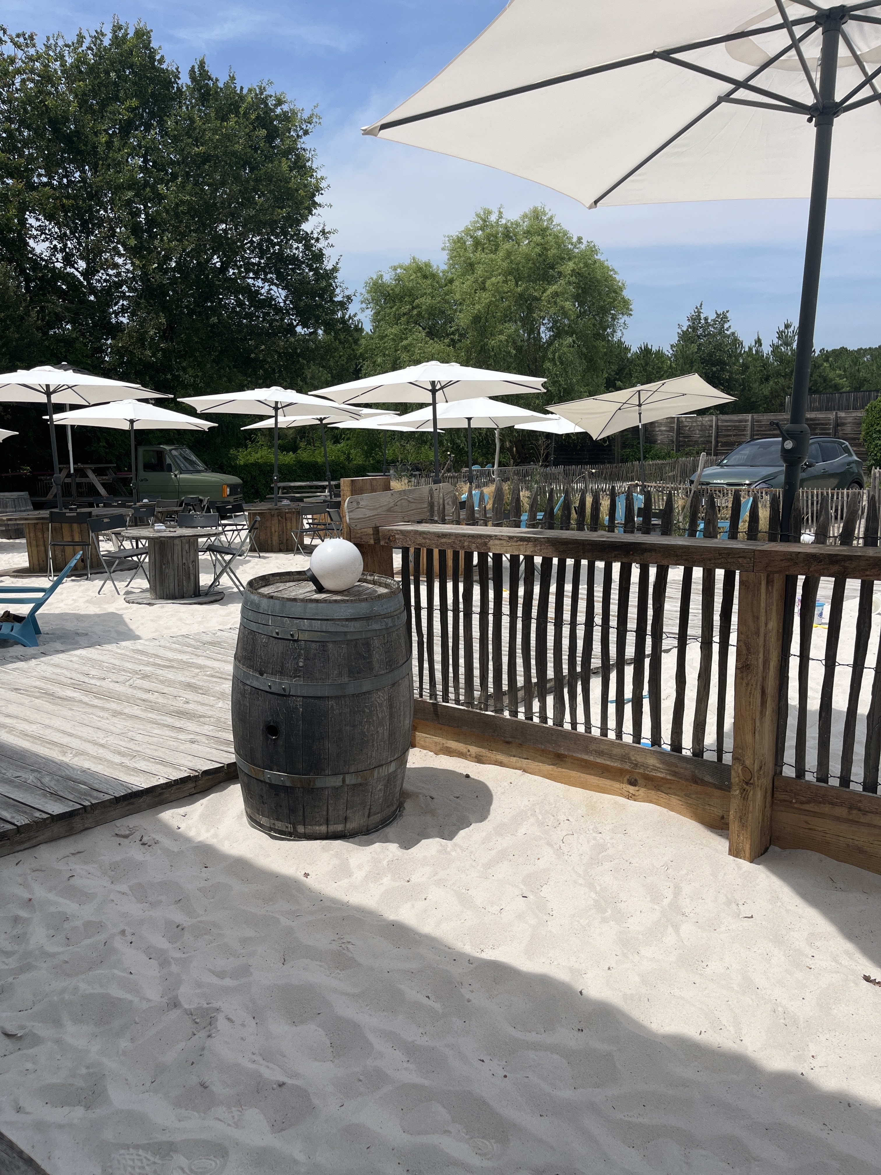 Les pied dans le sable on attend que le bip sonne pour chercher la commande tres très sympa