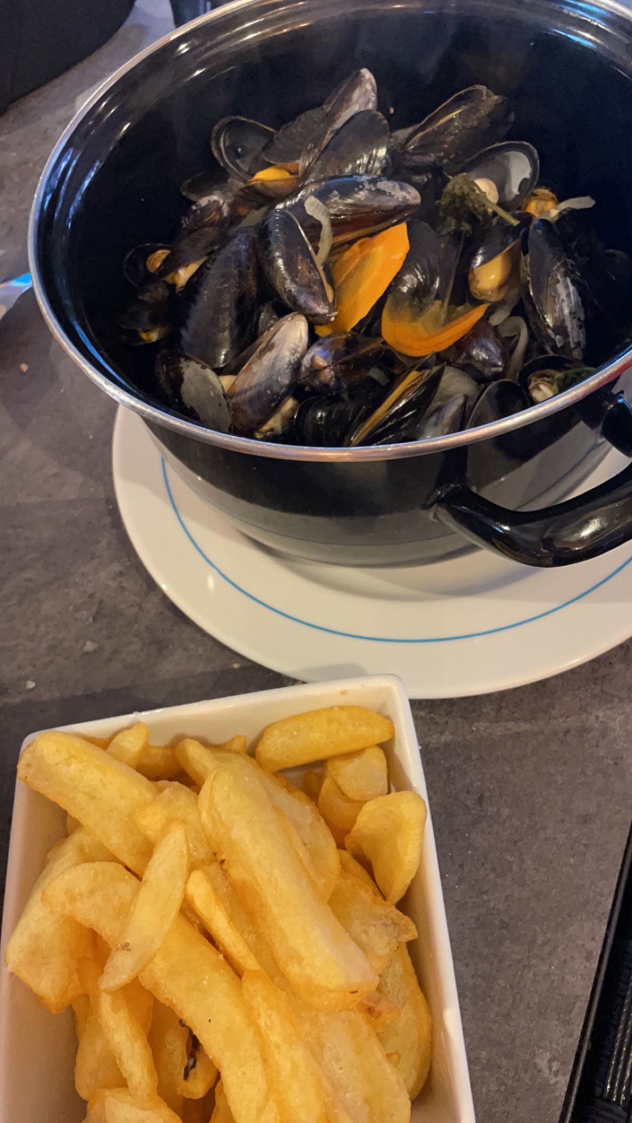 Peu de monde ce soir, les serveurs sont sympathiques, les moules frites au gorgonzola sont bonnes et la vue est vraiment belle.