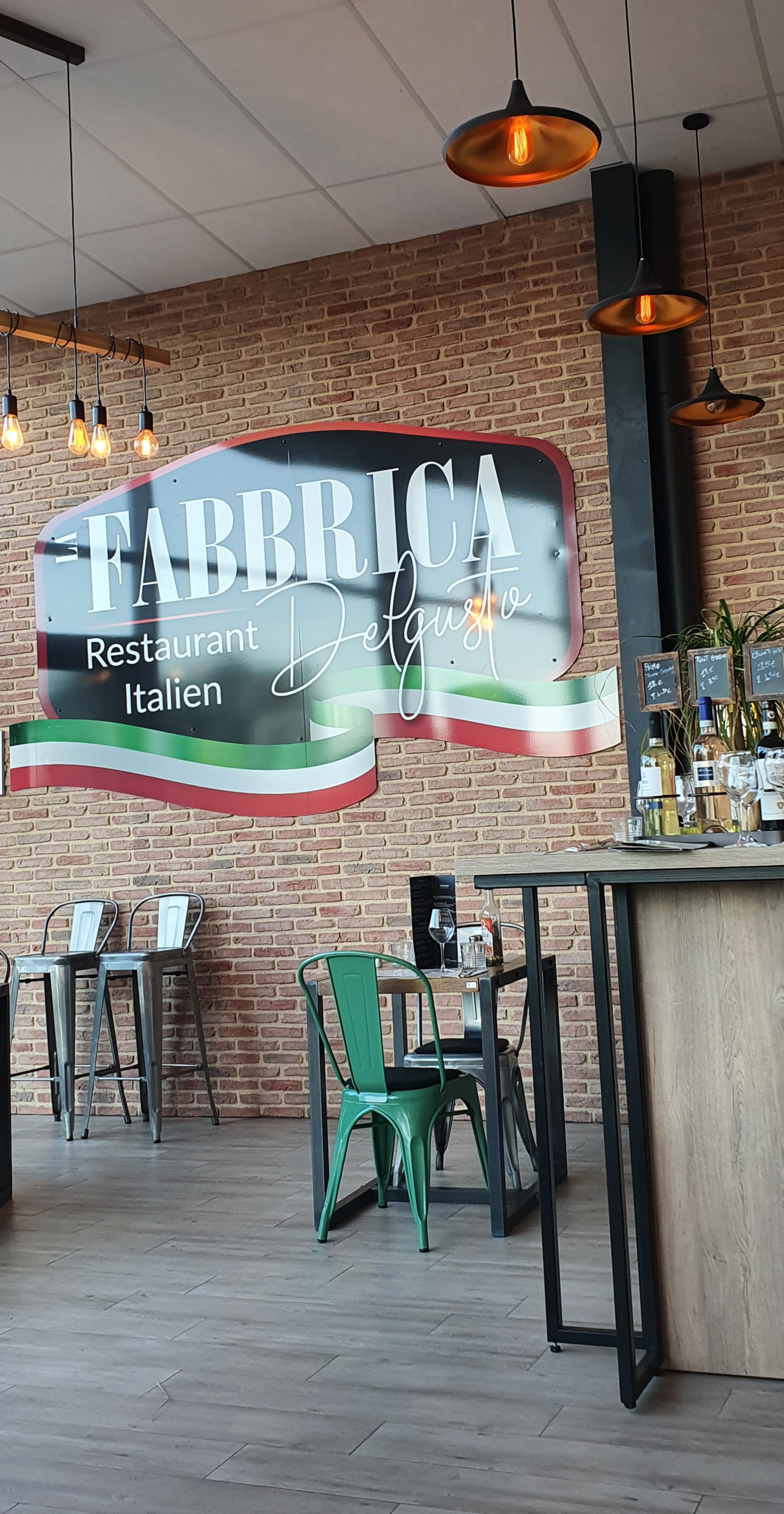 Le lieu est sympa et décoré genre fabrique industrielle , les locaux sont spacieux, le site est tout neuf. A noter que les cuisiniers officient devant une baie vitrée, ce qui permet au client de les apercevoir travailler aux fourneaux et composer les plats des commandes. Ces plats sont bien garnis en quantité, mais également en qualité gustatives ce qui est très bien. Les tarifs de vente sont dans la moyenne pratiquée par les autres restaurants situés dans les environs de La Fabbrica. Le temps d'attente pour être servi à table, après avoir préalablement commandé son plat, est assez réduit. Le personnel est sympathique, serviable mais surtout professionnel : la pannière est immédiatement regarnie après le dernier morceau utilisé et ce, sans réclamer... ce qui, en ce domaine, est rare en restauration. Donc, satisfaction totale. Et bien entendu, nous recommandons ce restaurant.