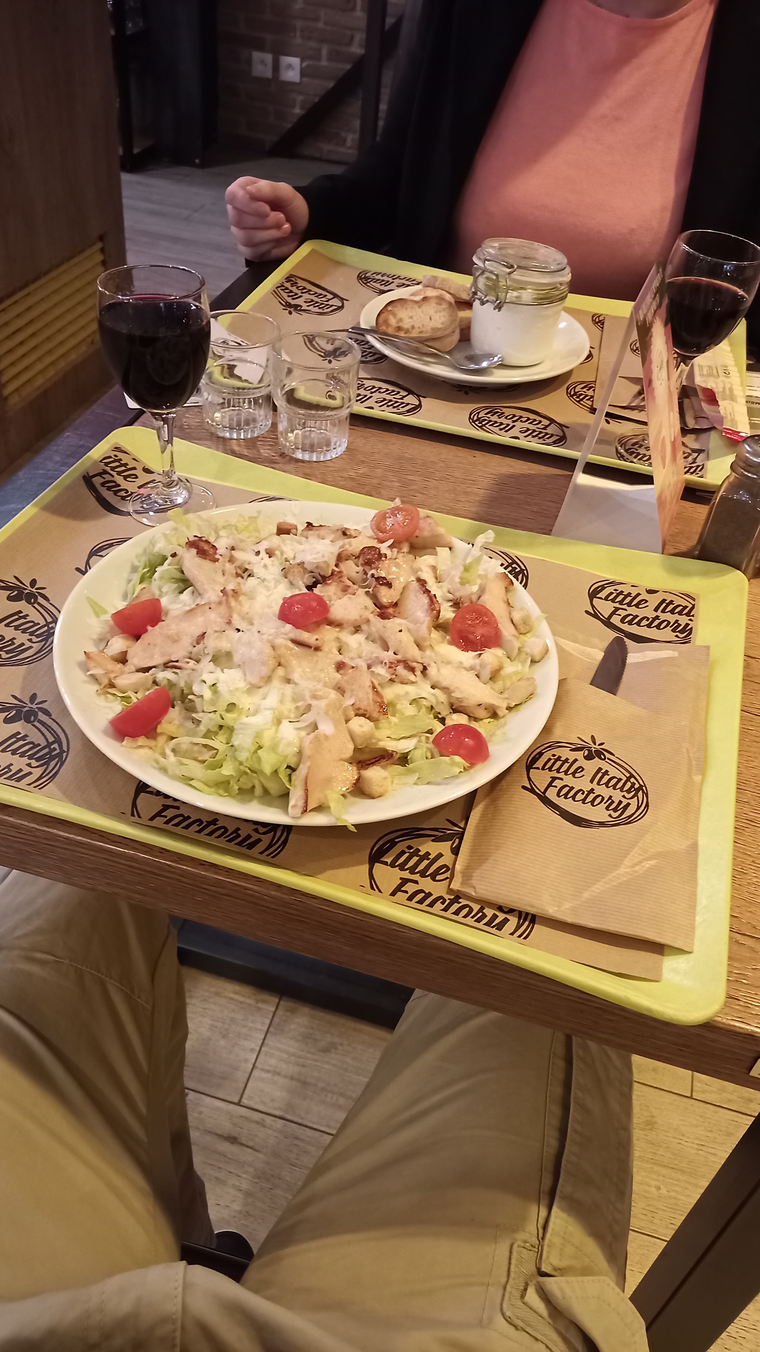 Je ne prends pas souvent le temps de faire de la pub, mais la oui… malgré les avis plus ou moins positif, nous avons voulu faire notre propre avis et nous n’avons pas été déçus.Effectivement il n'y a pas dans cet italien de nappe à carreaux mais la déco type “nature et industriel” est dans l'air du temps. Le concept de commander à l’aide d’une carte sa boisson, son plat, son dessert ne nous a pas dérangé mieux vaut le faire soi même que d’attendre 10 mn un serveur débordé, mal organisé… surtout que le personnel présent n’est pas statique et à notre disposition en cas de besoin. En terme de qualité d’alimentation puisque c'est le principal gage d'un restaurant : les pizzas sont fines, pas surchargées mais de produits frais, la qualité des fromages de la “fromaggi” sont extra pas 3 tonnes de mozzarella insipide, mon mari a quant à lui pris des pâtes “pollo funghi” poulet/tomate cerise/champignon/roquette/crème tout les ingrédients étaient frais et de surcroît nous pouvons choisir entre 5 sortes de pâtes fraîches !!! Et pour une fois il n’avait pas faim comparé à un concurrent (Pizza Del A… qui soit dit en passant la plupart des plats sont surgelés) Les desserts sont variés et très corrects. Au niveau prix nous avons choisi le menu boisson/plat/dessert à 14,90 € Petit bémol l'accès au parking qui ne peut pas se faire directement par la voie principal mais j'espère qu’avec notre ressenti vous prendrez le temps de patienter au feu et emprunter la petite route pour y accéder… Je précise que nous n’avons pas d'action chez little italy factory nous avons juste apprécié un agréable repas :-)