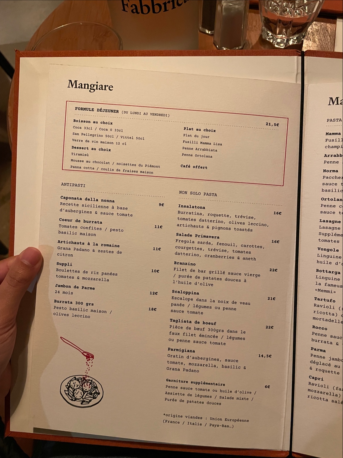 Très joli endroit, accueil enjoué et professionnel. Cuisine italienne comme son nom l'indique.... bien sûr pas de pizza mais des pâtes al dente, des proportions copieuses, des prix raisonnables, un service rapide et efficace. Une formule déjeuner à 19.50 euros. Bravo pour la qualité des produits et des cuissons.