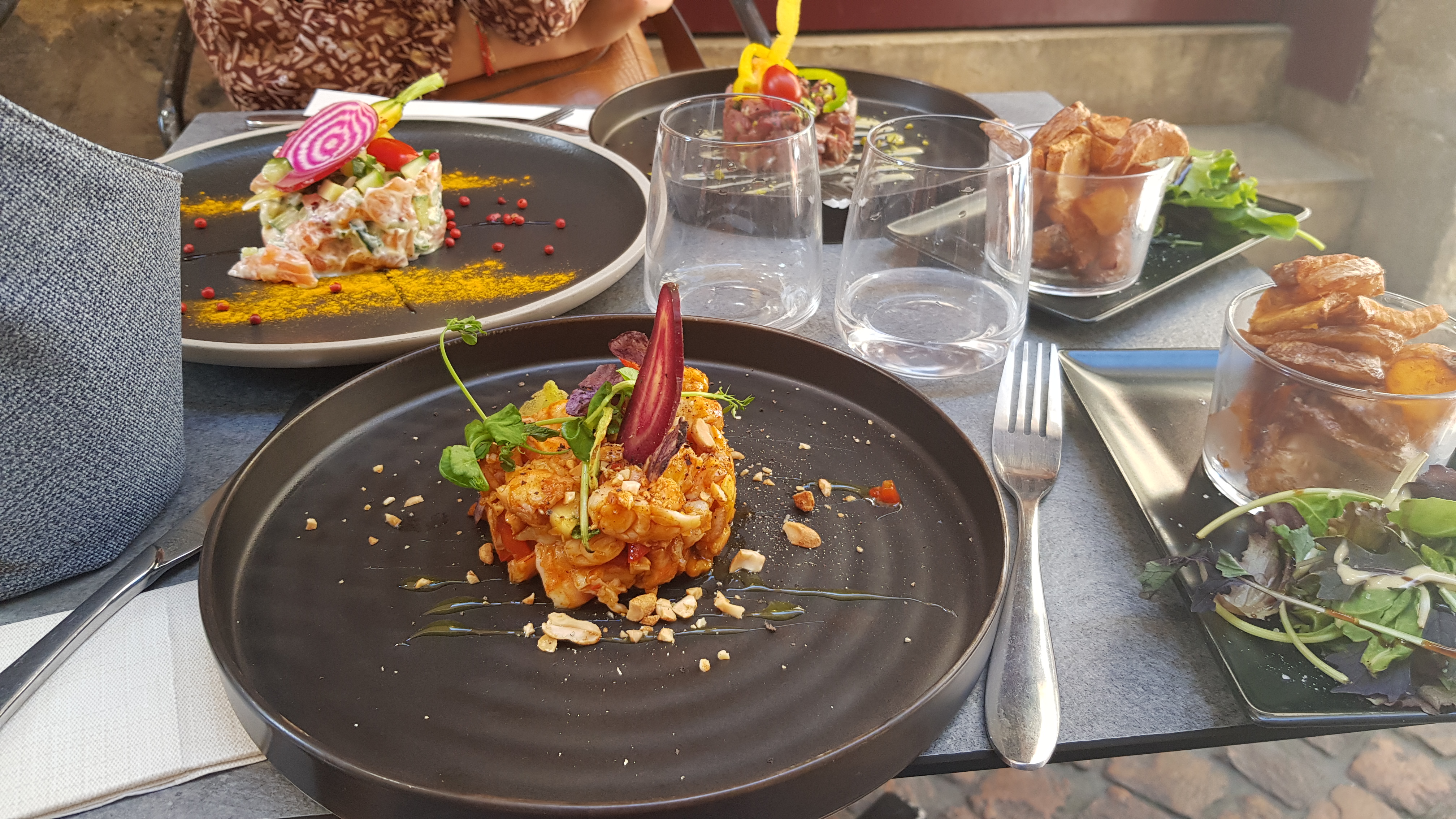 La présentation des plats est jolie. Le service est treeeeeeees lent... 1h d'attente entre le moment où l'on s'asseoit et le moment où l'on reçoit le premier plat... Les tartares sont délicieux mais les portions peu généreuses. Concernant le dessert, j'ai pris un fondant chocolat... Il est clairement industriel car salé et le goût est très similaire à ceux des préparations Alsa.. J'ai encore l'arrière goût salé alors que j'écris ce commentaire... Le rapport qualité-prix n'est pas exceptionnel. Je ne recommande pas au vu des restaurants alentours meilleurs avec un service plus efficace et un rapport qualité prix mieux...