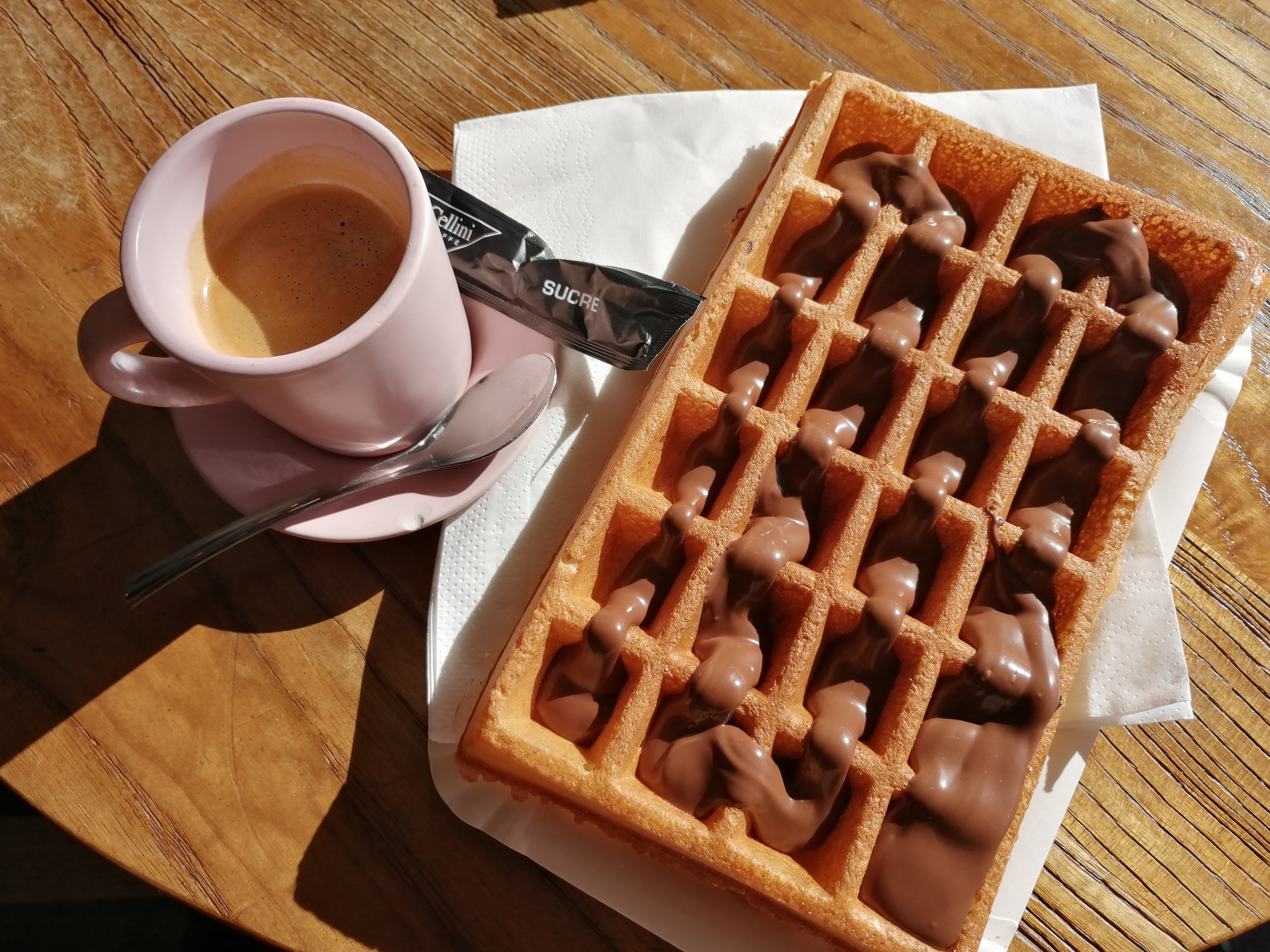Nous avons pris une bonne gaufre avec notre chocolat en terrasse. Trop les uns sur les autres. Sinon sympa